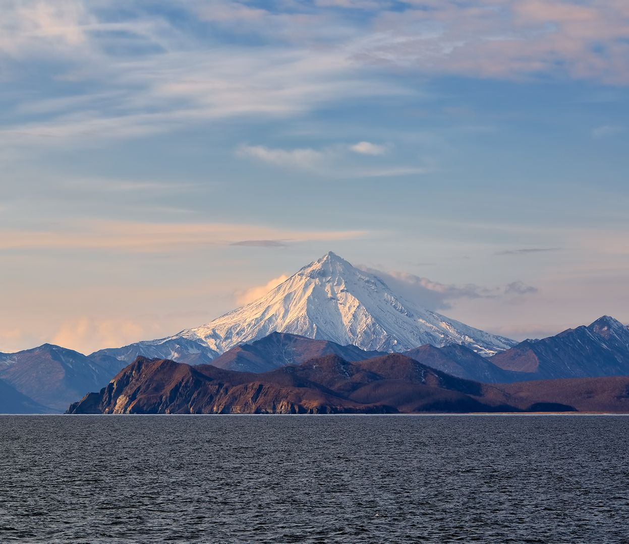 камчатка, вулкан, утро, осень, горы, берег, Евгений Паршуков