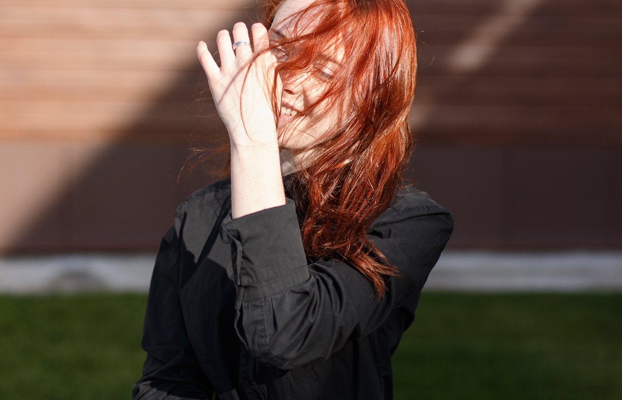 портрет, девушка, рыжая, ветер, Александр Емельянов