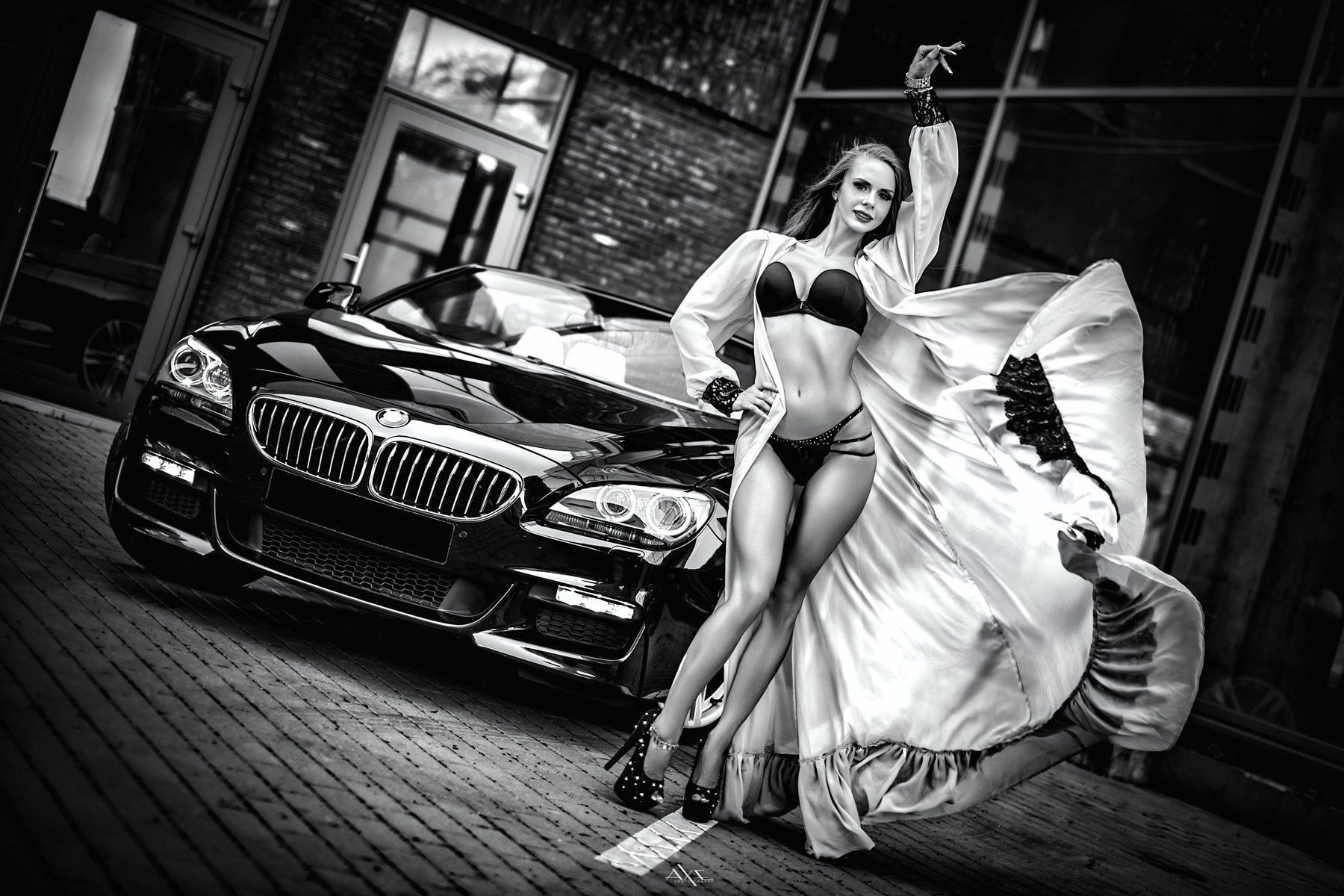 Black and white, Car, Woman, Руслан Болгов (Axe)