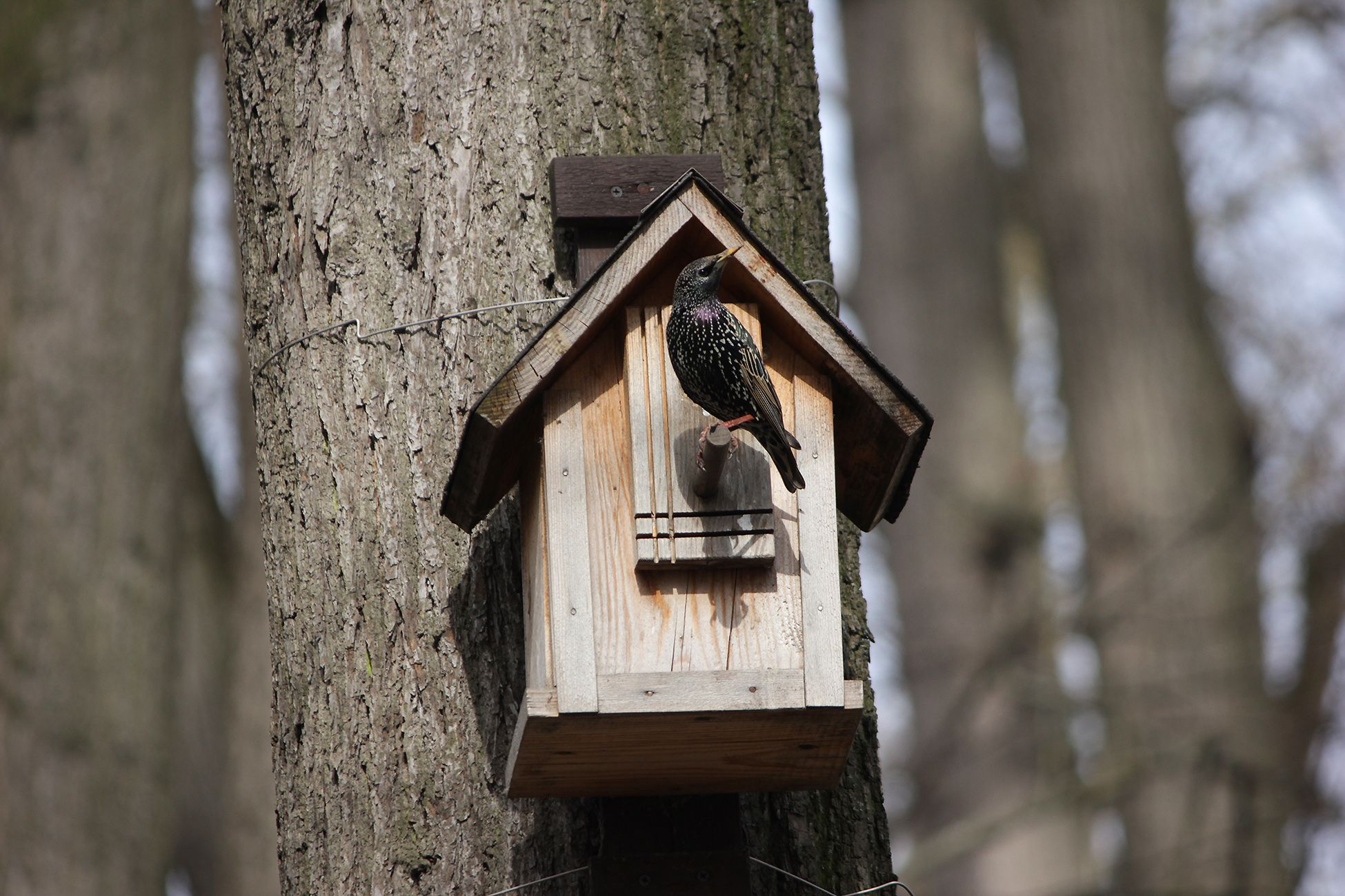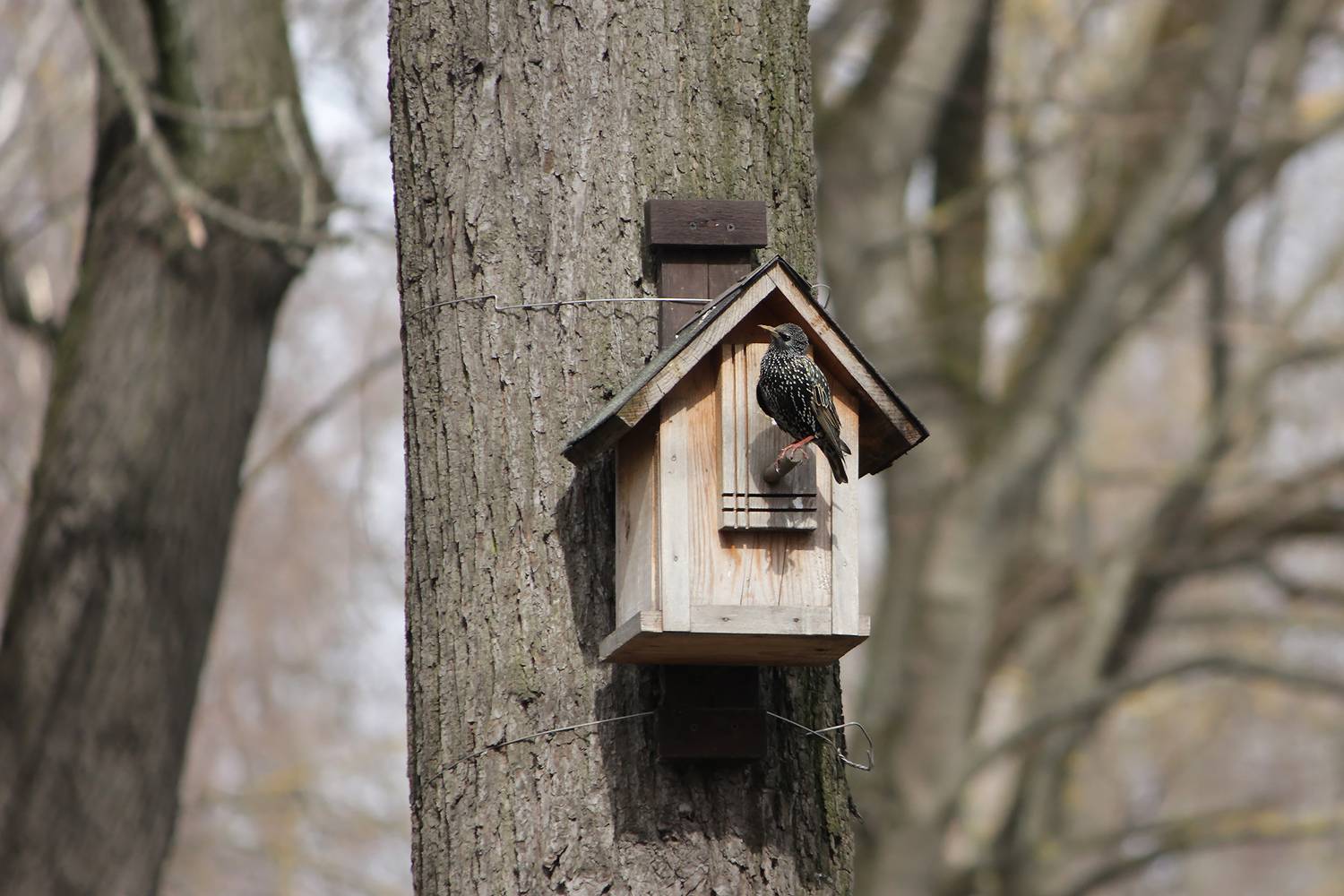 Обыкновенный скворец (Sturnus vulgaris). Прилетели, занимают скворечники...