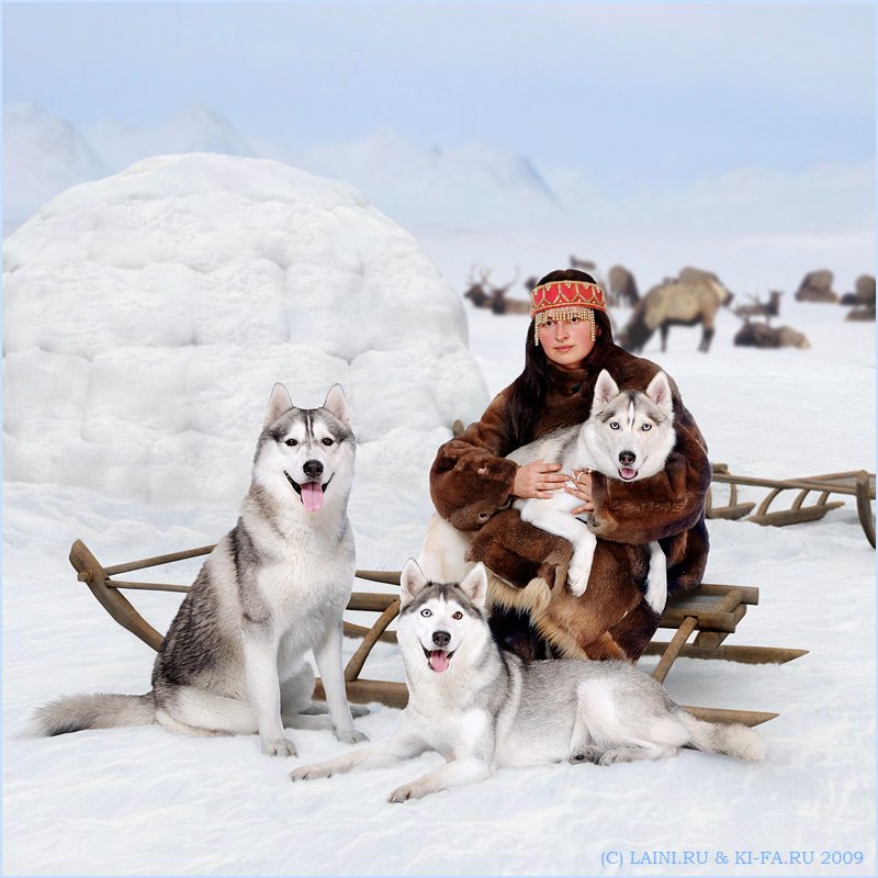 "Термин «хаски» изначально обозначал самих эскимосов, так их называли работники Хадсон Бей Компании. Термин «хаски» произошел от искаженного «эски», так на жаргоне называли эскимосов. Эскимосский хаски, или канадская лайка (51-69 см в холке), имеет историческую родину Гренландию. С ней часто охотятся на белых медведей.