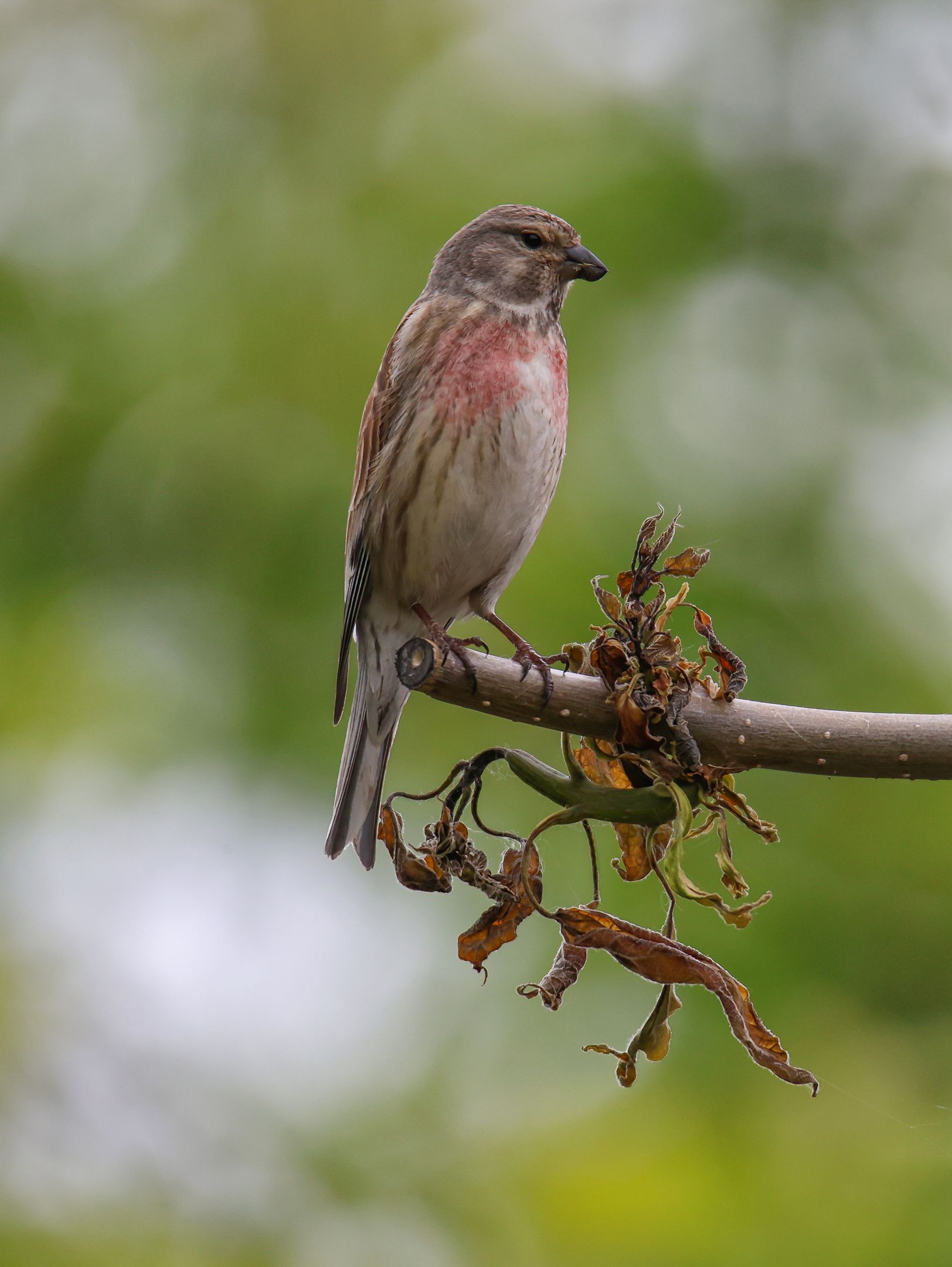 Птенцы Коноплянки перед вылетом из гнезда, один из родителей