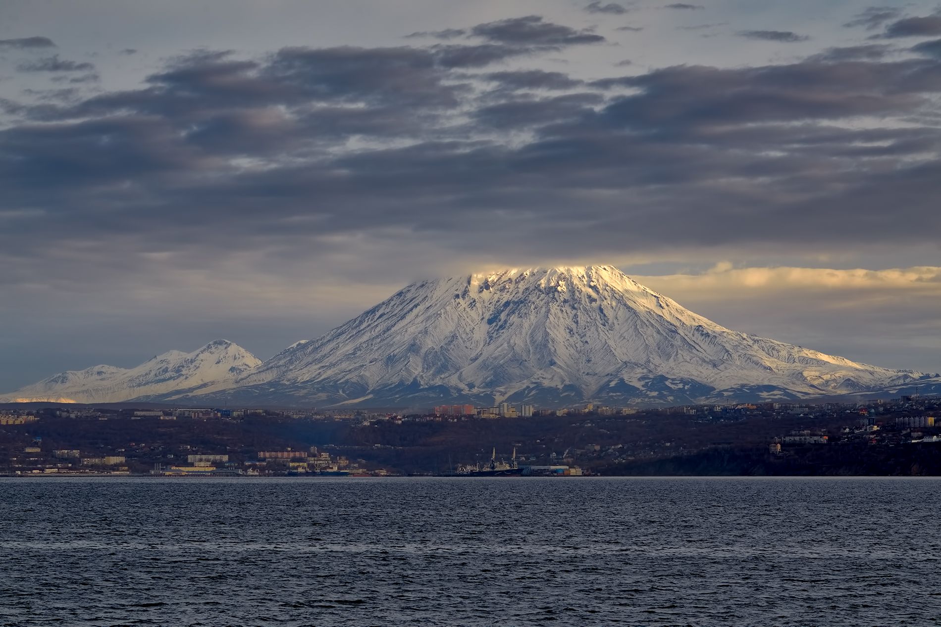 корякский вулкан, осень, утро, свет, берег, рейд, облака, Евгений Паршуков