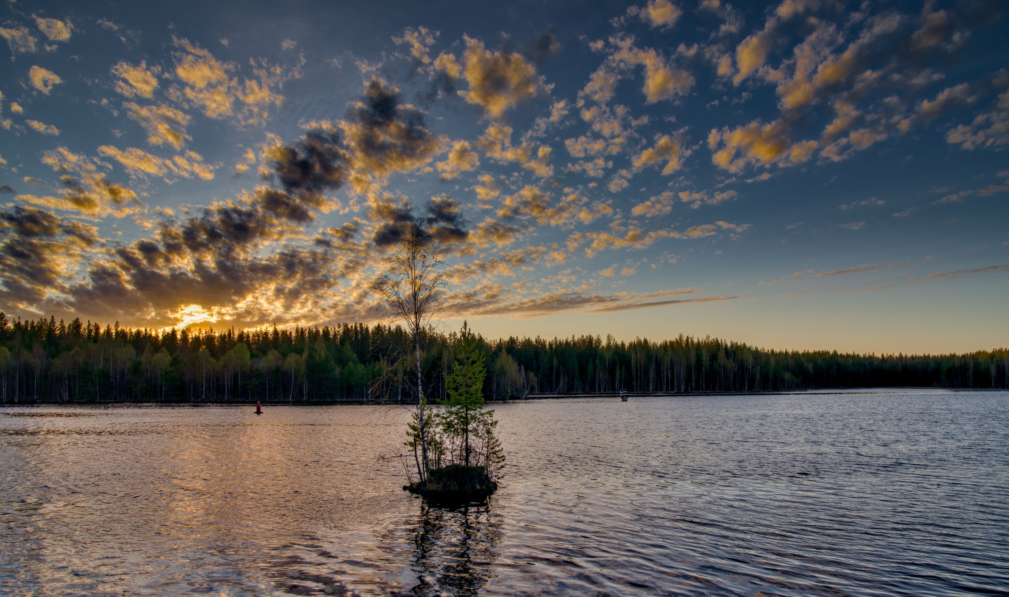 закат весна вода тучи лес деревья вечер, Шишпанов Игорь
