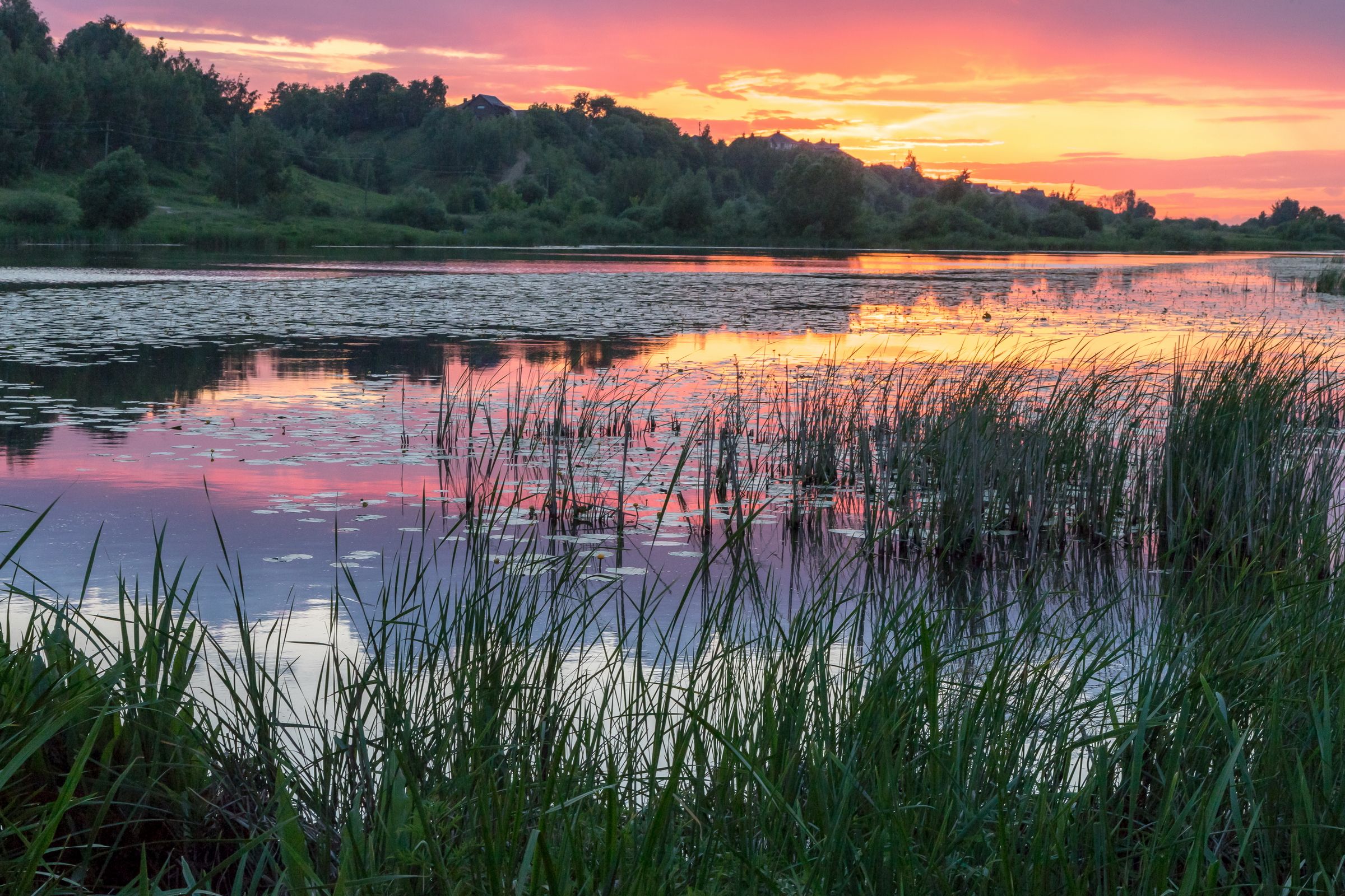 вечер, закат, озеро, пейзаж, Юрий Морозов