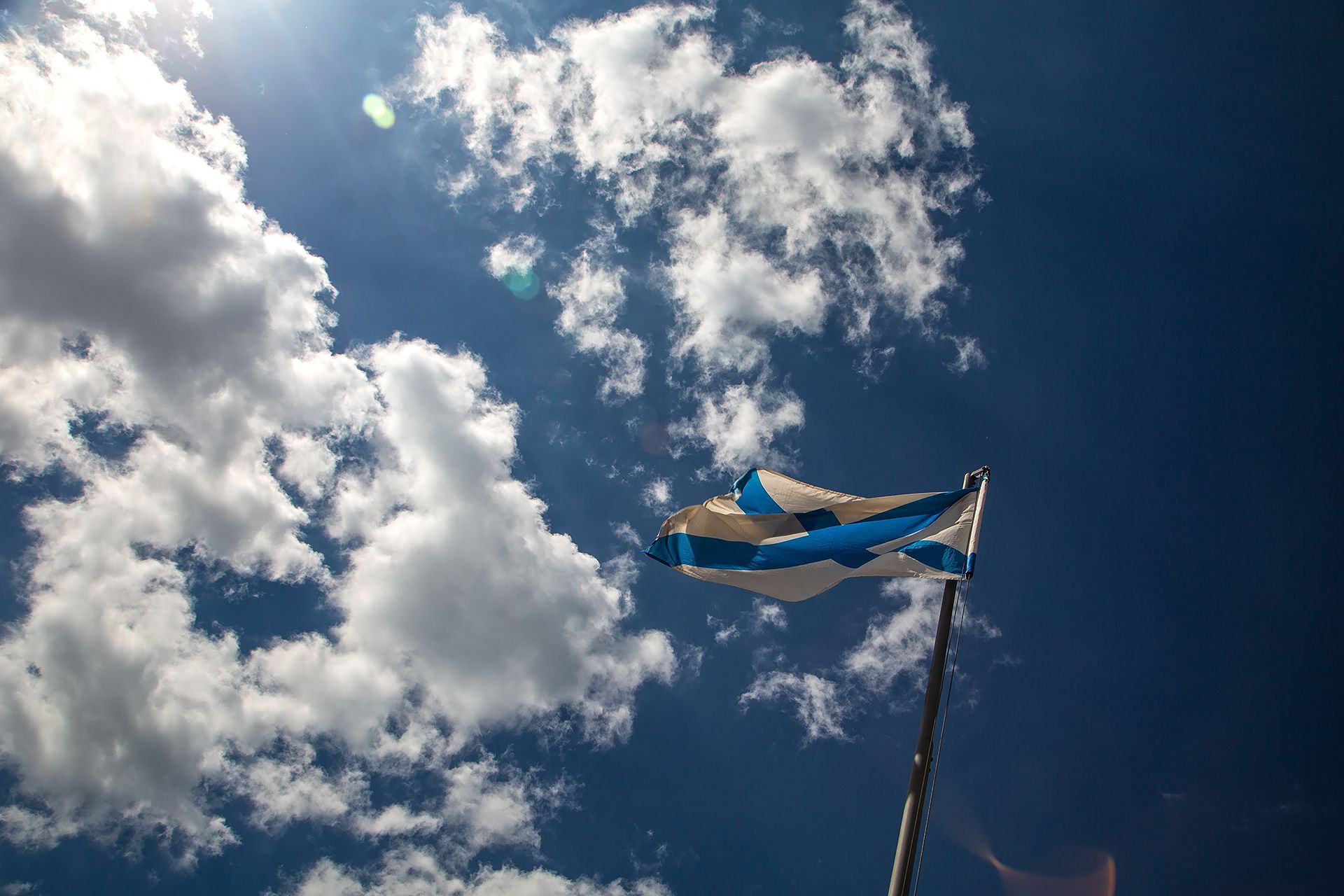 Андреевский флаг- кормовой флаг кораблей Российского императорского флота и Военно-морского флота Российской Федерации. Представляет собой белое прямоугольное полотнище с синим (голубым) диагональным Андреевским крестом. Назван по имени апостола Андрея Первозванного.