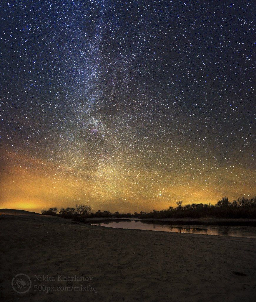 млечный путь, звезды, астрофото, ночь, ночной пейзаж, звездная ночь, небо, пляж, река, свет, яркий, Харланов Никита