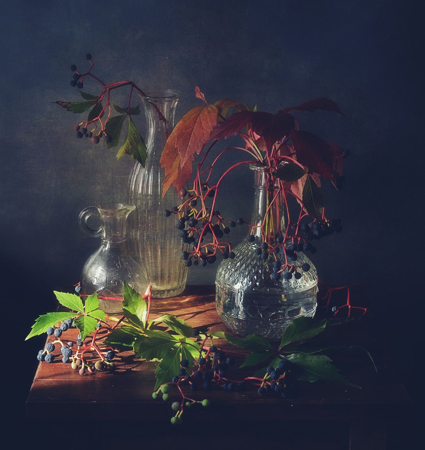 натюрморт,виноград,осень,ягоды,стекло,листья, Наталия К