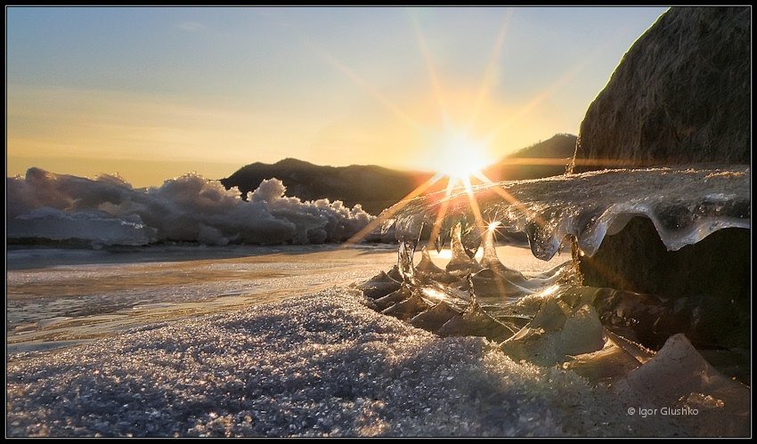 На замерзающей реке. Ноябрь месяц в Бурятии.
