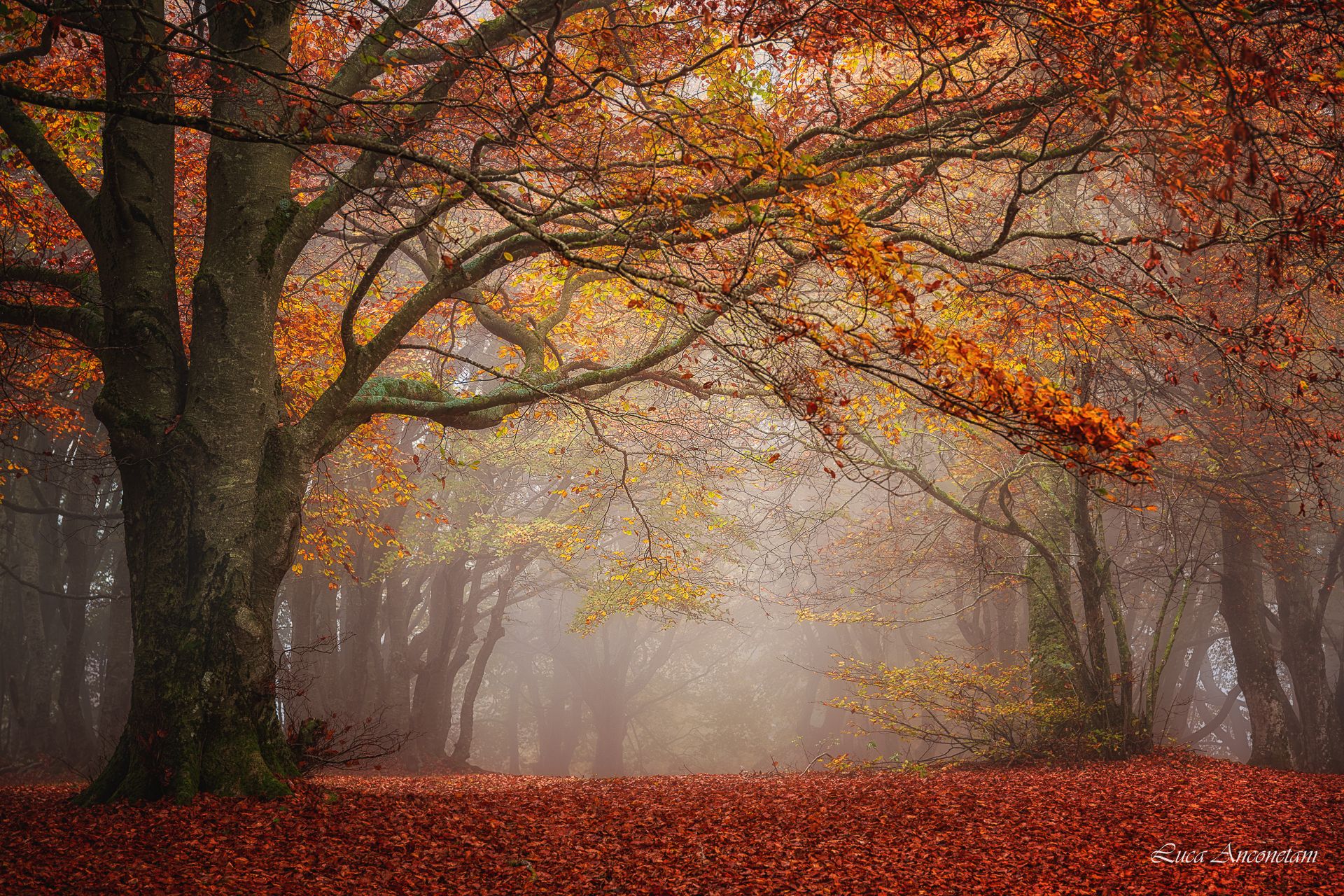 woods nature landscape canfaito italy trees leaves autumn fog, Anconetani Luca