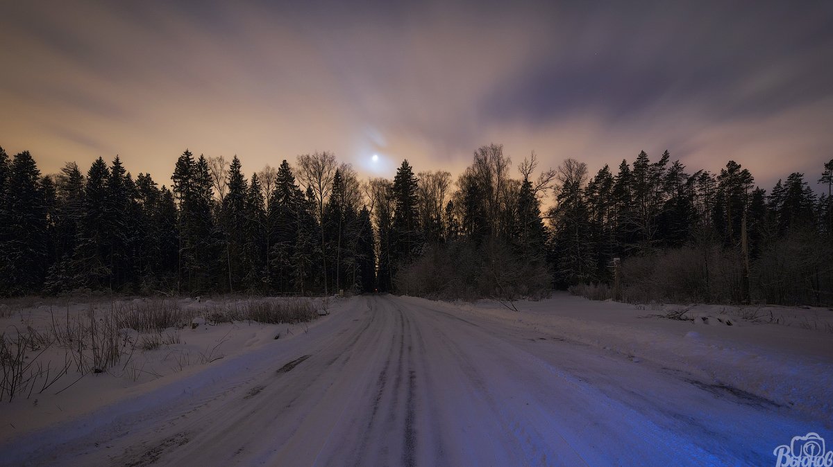 Canon 6d, Выдержка, Дорога, Зима, Лес, Лобненский лесопарк, Луна, Подмосковье, Природа, Сергей Вьюнов