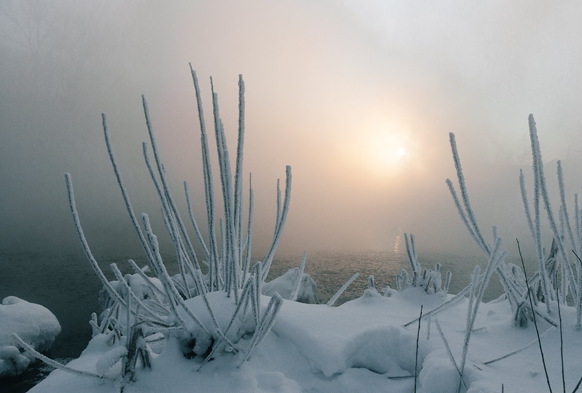 Зима, Иней, Мороз, Пейзаж, Рассвет, Река, Туман, Анатолий Зверев