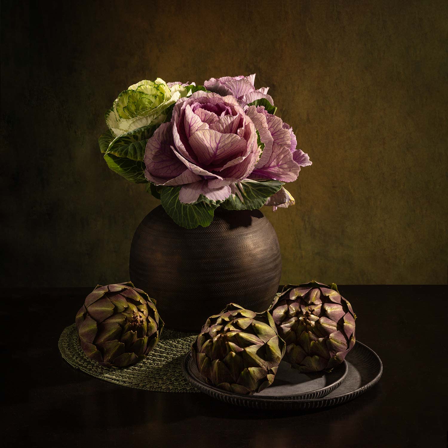 декоративная капуста, ваза, артишок., Рут