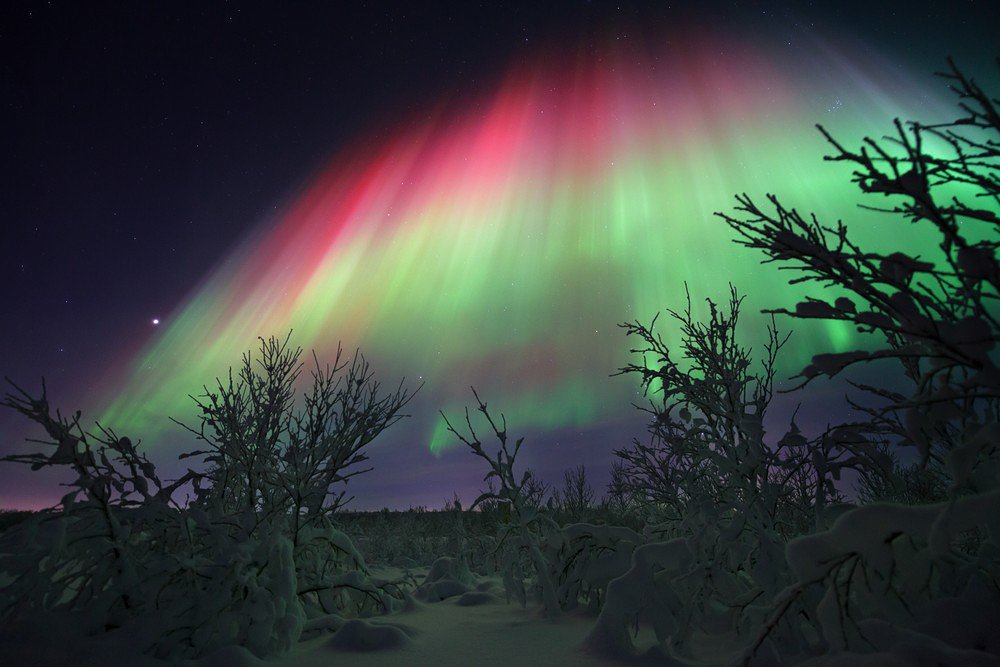 В декабре 2014 года, выпала удача наблюдать невооружённым глазом красное свечение полярного сияния.