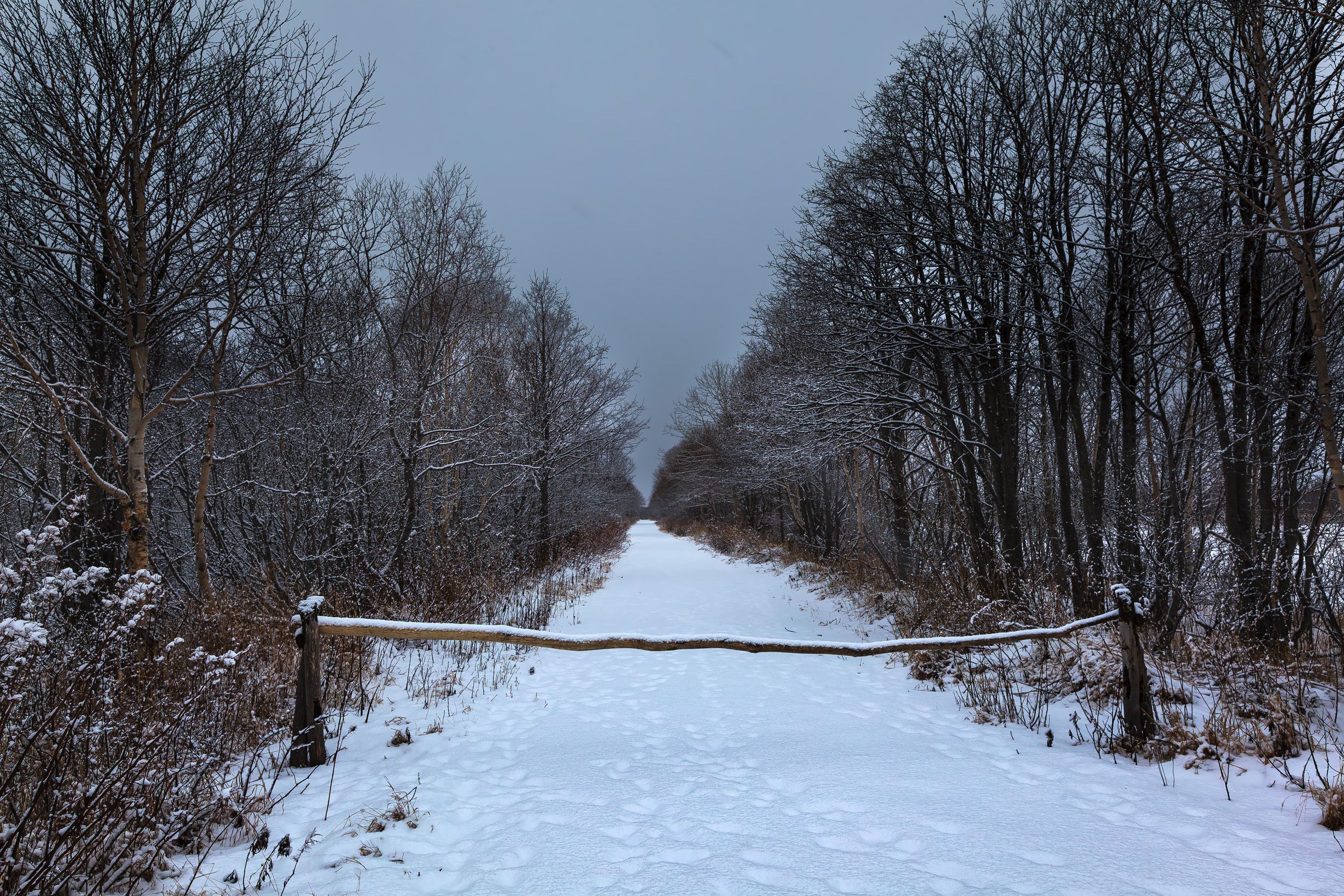 дорога, шлагбаум, пасмурный день, Уткин Дмитрий