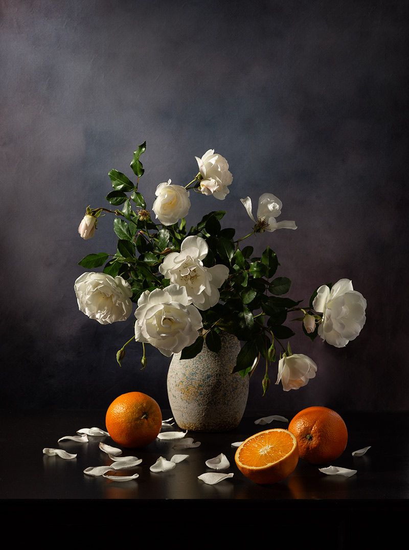 розы, кувшин, апельсины., Рут