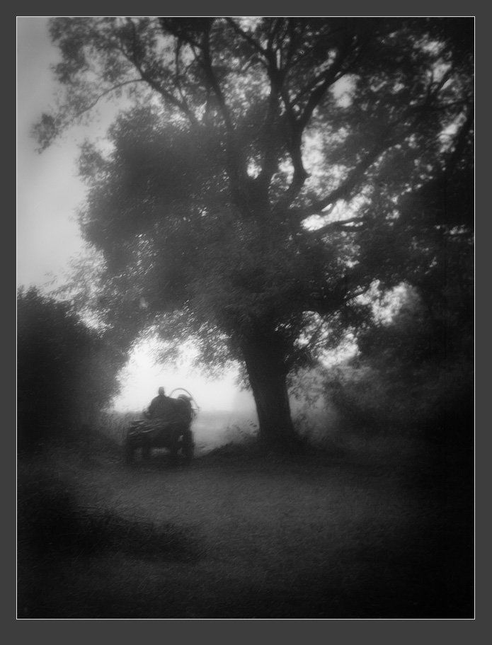 пейзаж, туман, повозка, дерево, Александр Авилов