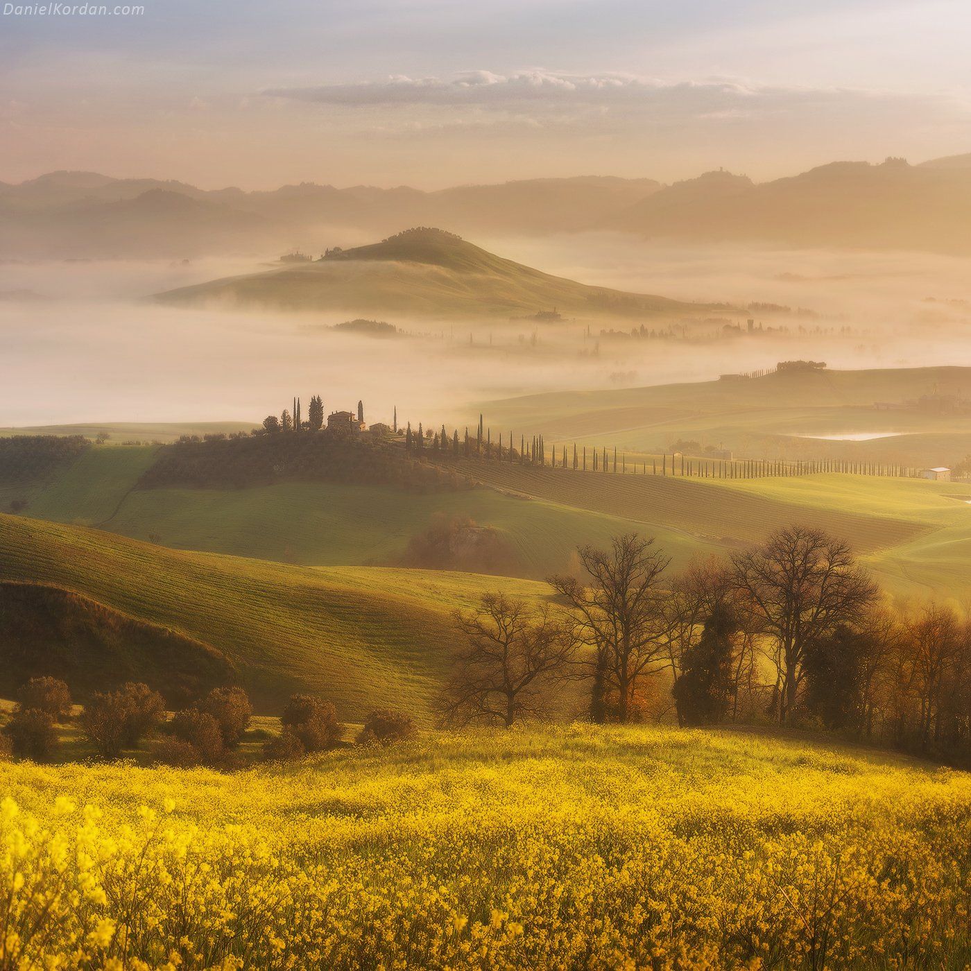 Когда стоишь по пояс в весенних цветах на вершине, перед великолепным тосканским пейзажем, кажется, что перед тобой гигантская картина - картина, которая поёт, живёт, сверкает миллиардом росинок. Природа и человек в гармонии создали такое чудо.