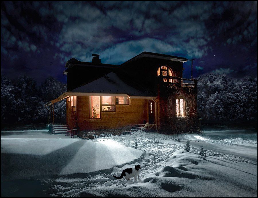 Поясняю: справа тень от снеж. бугорка -почти черная по тону, а теневая сторона киски и её пад. тень -очень светлая