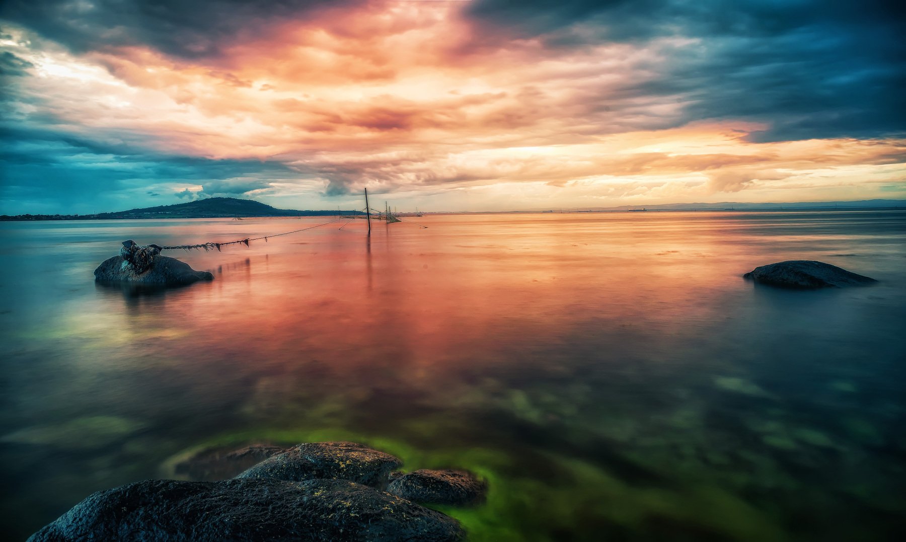 sunset, sea, sky, clouds, seascape, clouds, rocks, Jeni Madjarova