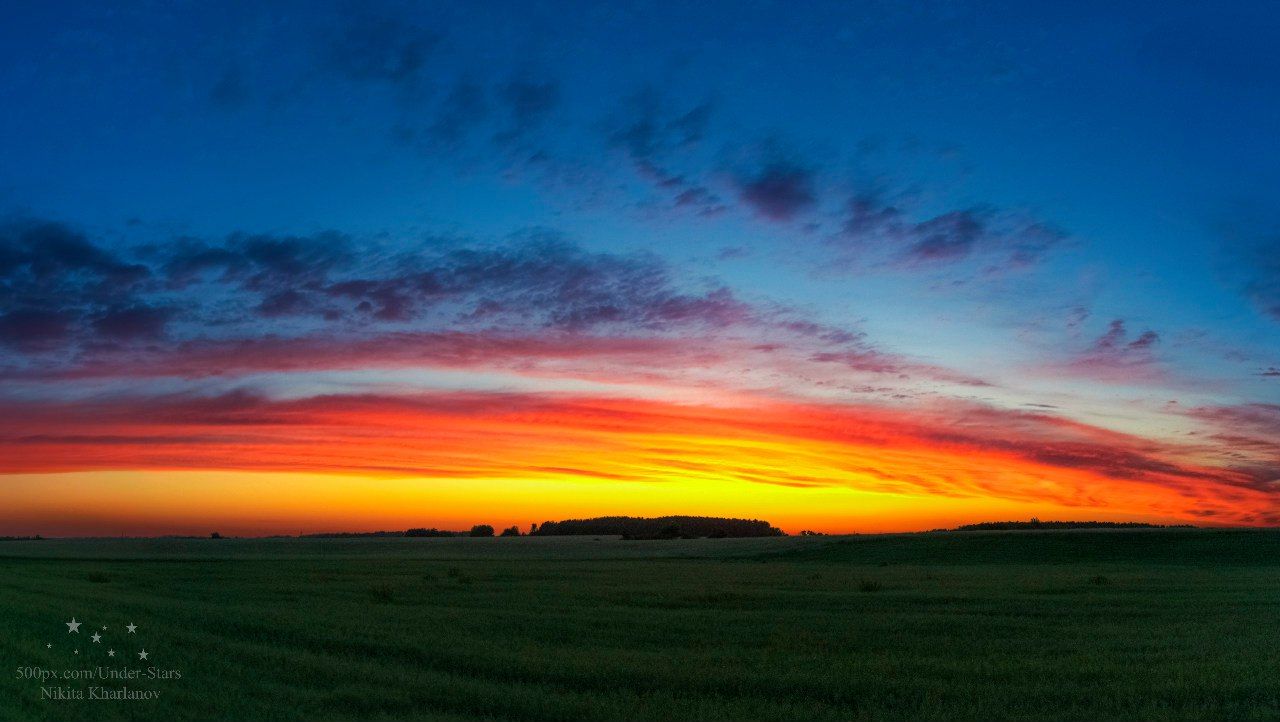 закат, лес, небо, огненное небо, солнце, облака, Харланов Никита