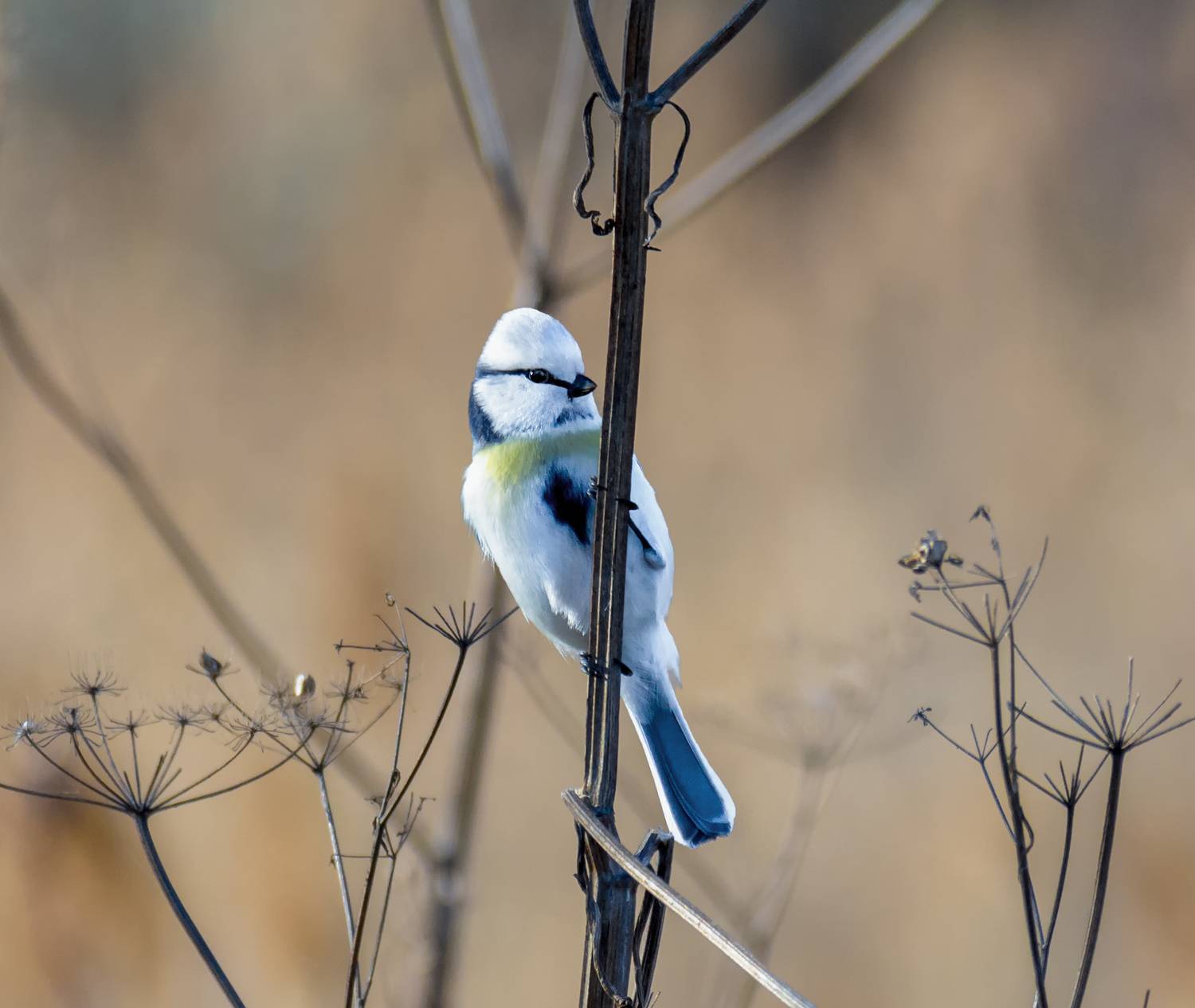 Уникальная птичка, гибрид князька (белой лазоревки) и обыкновенной лазоревки.