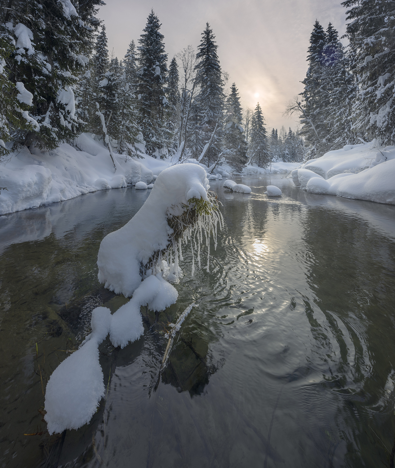 ❄️ Хорошо передано настроение — холод, свет, движение воды.