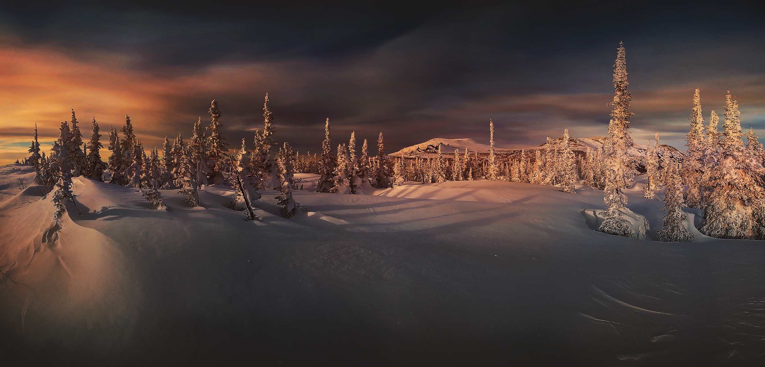 шерегеш, сибирь, кузбасс, зима, снег, сугробы, лиственница, мороз, закат, Художников-Сухоребриков Павел