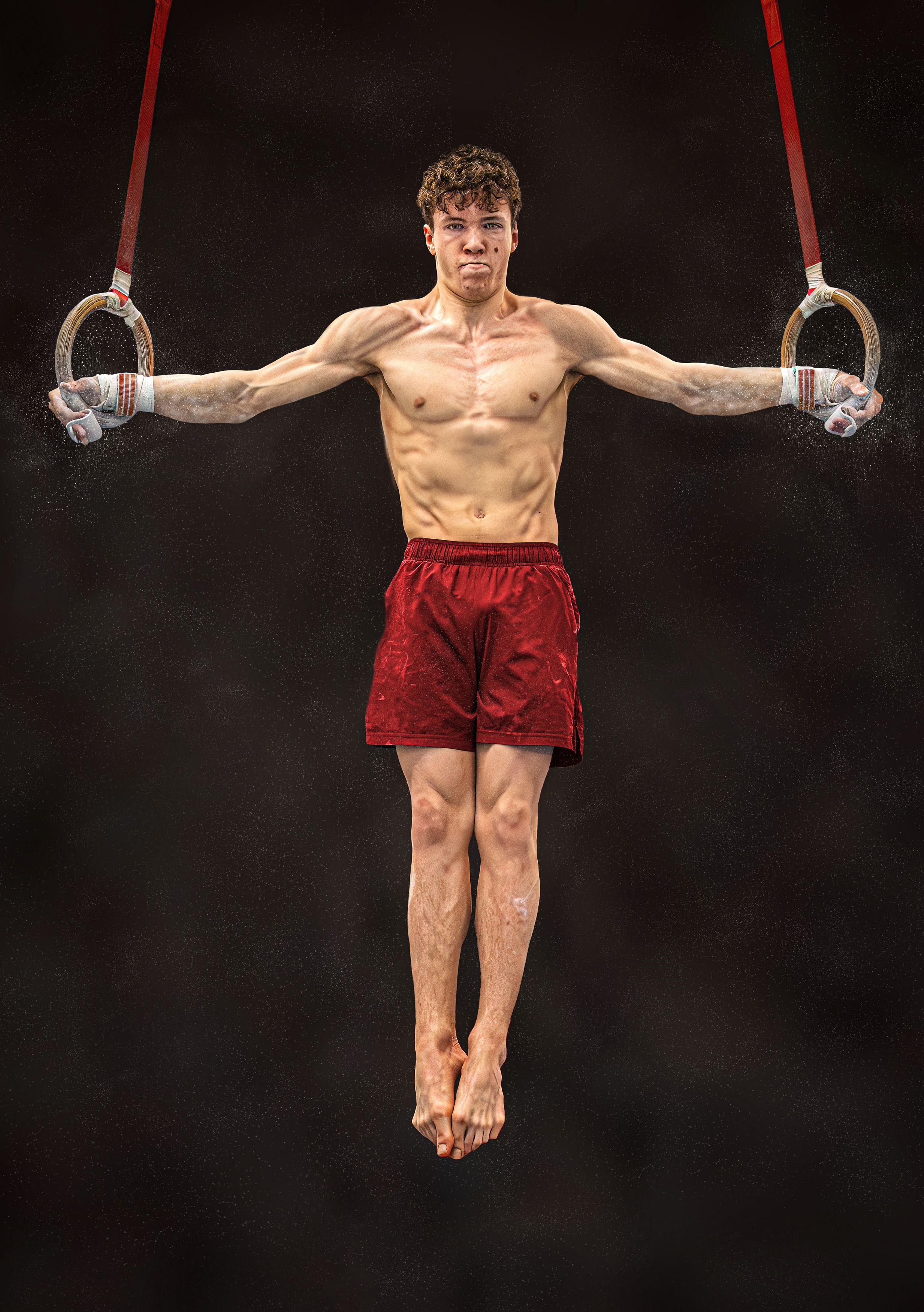 Strong lines, clear focus — the gymnast holds steady, arms wide, body tight. 🔁💪