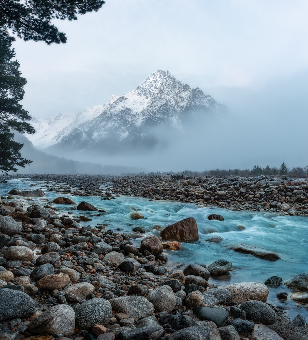 кавказ, кабардино-балкария, кбр, чегем, чегемское ущелье, горы, тихтенген, горная река, туман, утро, утро в горах, Zakharov Armen