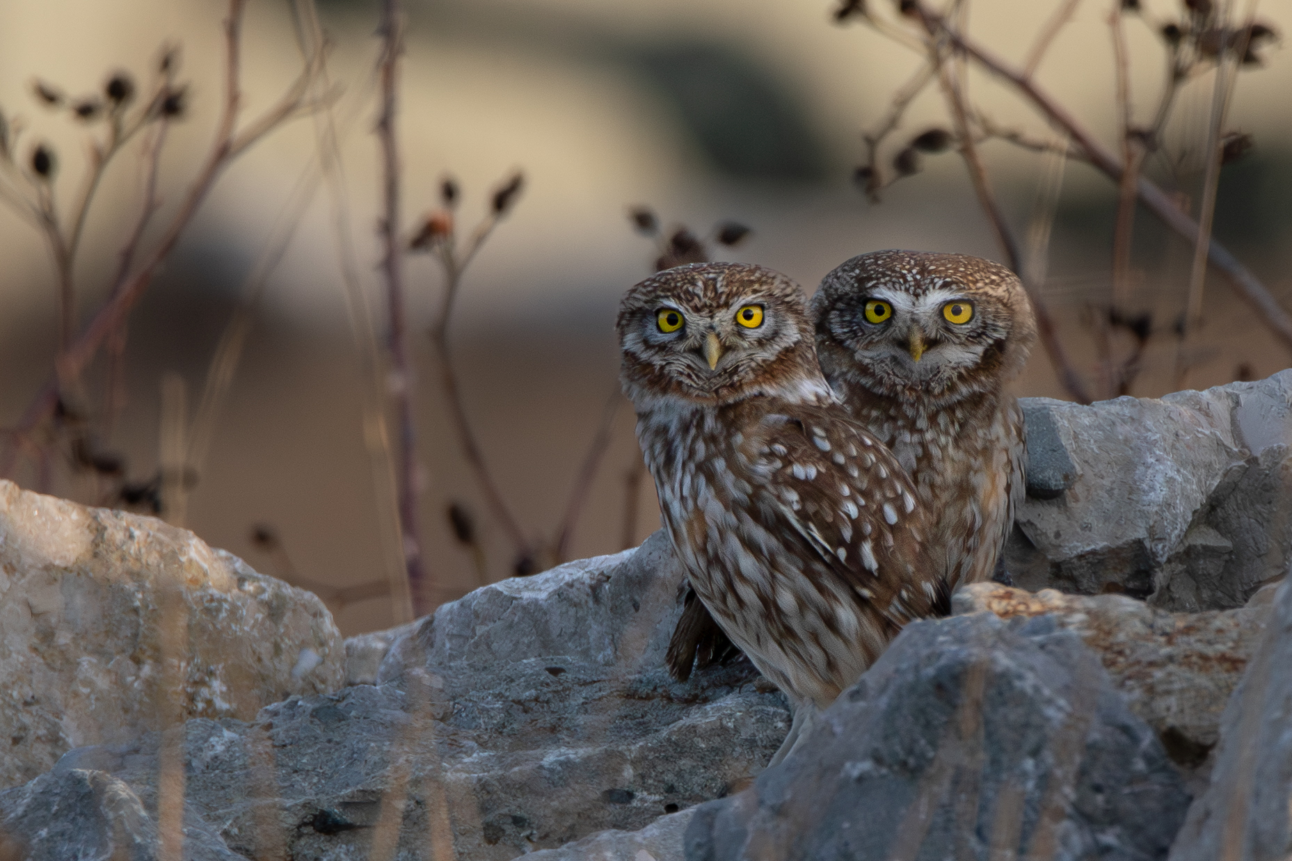 Вы прекрасно передали момент — две совы, словно из сказки, сидят на камнях, глядя прямо в объектив. Такая живая, почти трогательная близость. Свет, текстура, взгляд — всё на месте. Очень приятно смотреть.
