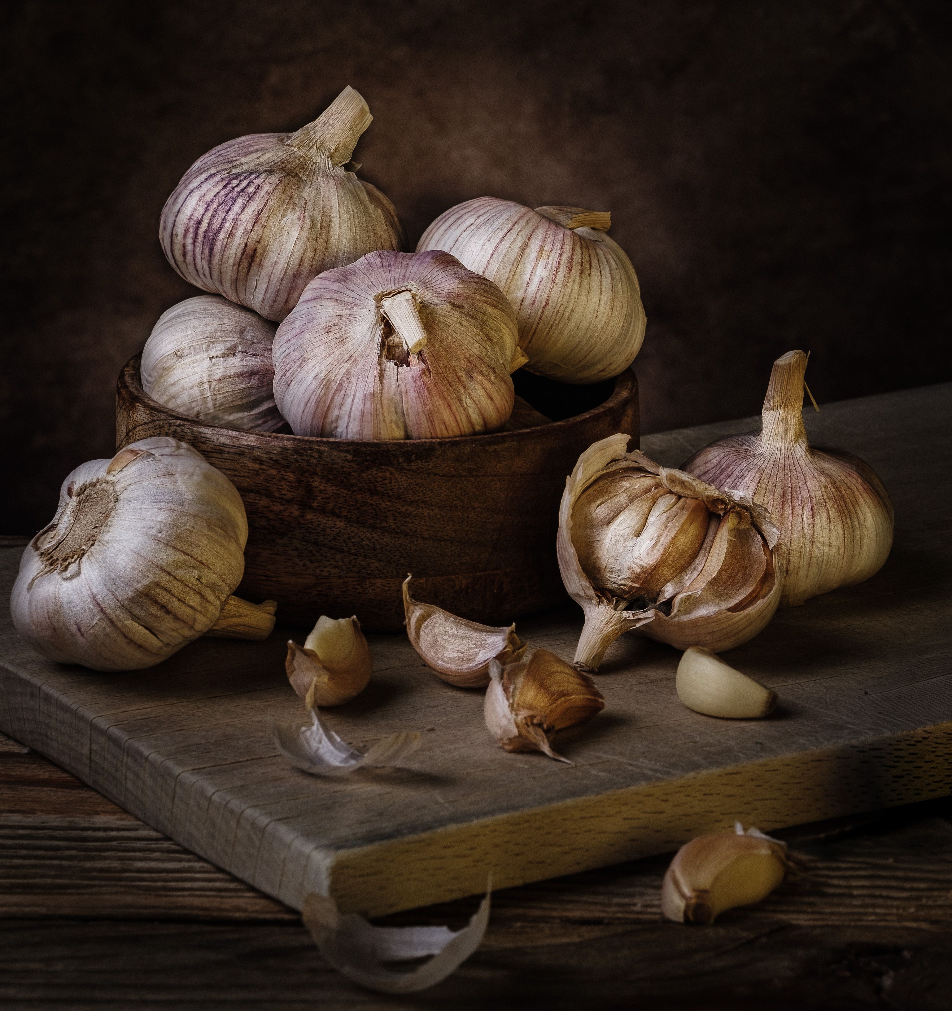 Ваш снимок передаёт атмосферу старинной натюрморта — как вы подобрали освещение, чтобы подчеркнуть фактуру чеснока?