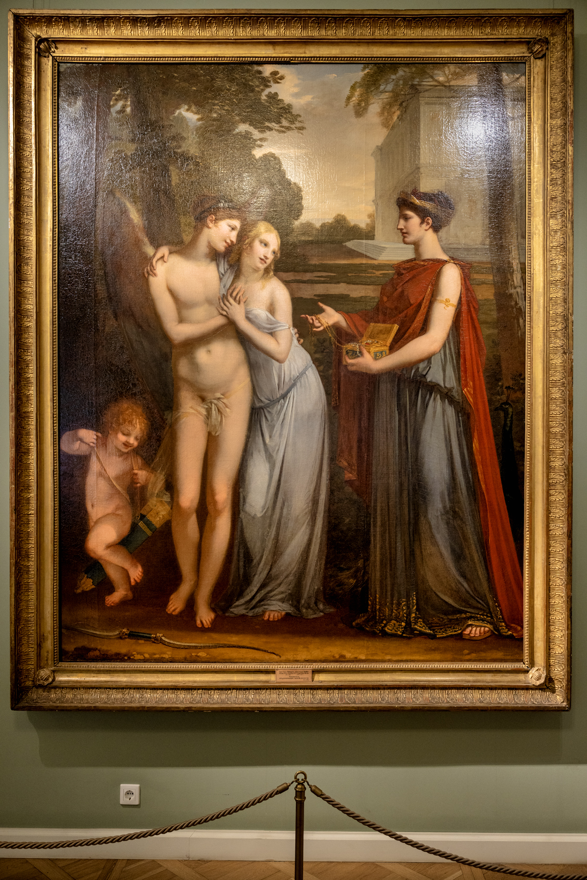 Ошибки встречаются даже на обложках энциклопедии.. Это деепричастный оборот, его границы: \"предпочитающая любовь богатству\". Тире здесь тожне без надобности. Это лишь форма высказывания: \"Предпочитаю любовь богаству!\"