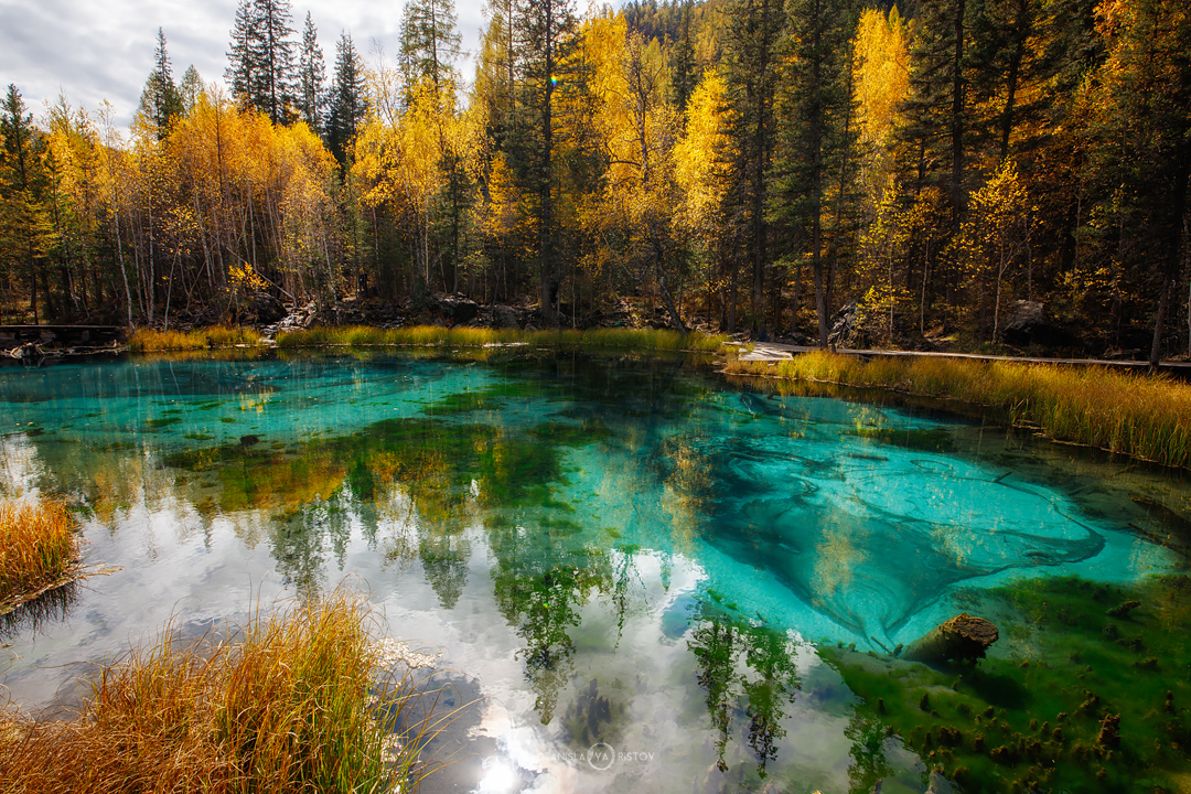 Вы запечатлели Гейзерное озеро в момент, когда осень в Алтае раскрывается в полной мере — яркие лиственницы отражаются в прозрачной бирюзовой воде, создавая почти сказочную картину. Снимок передаёт чистоту и силу природы, и это видно.
