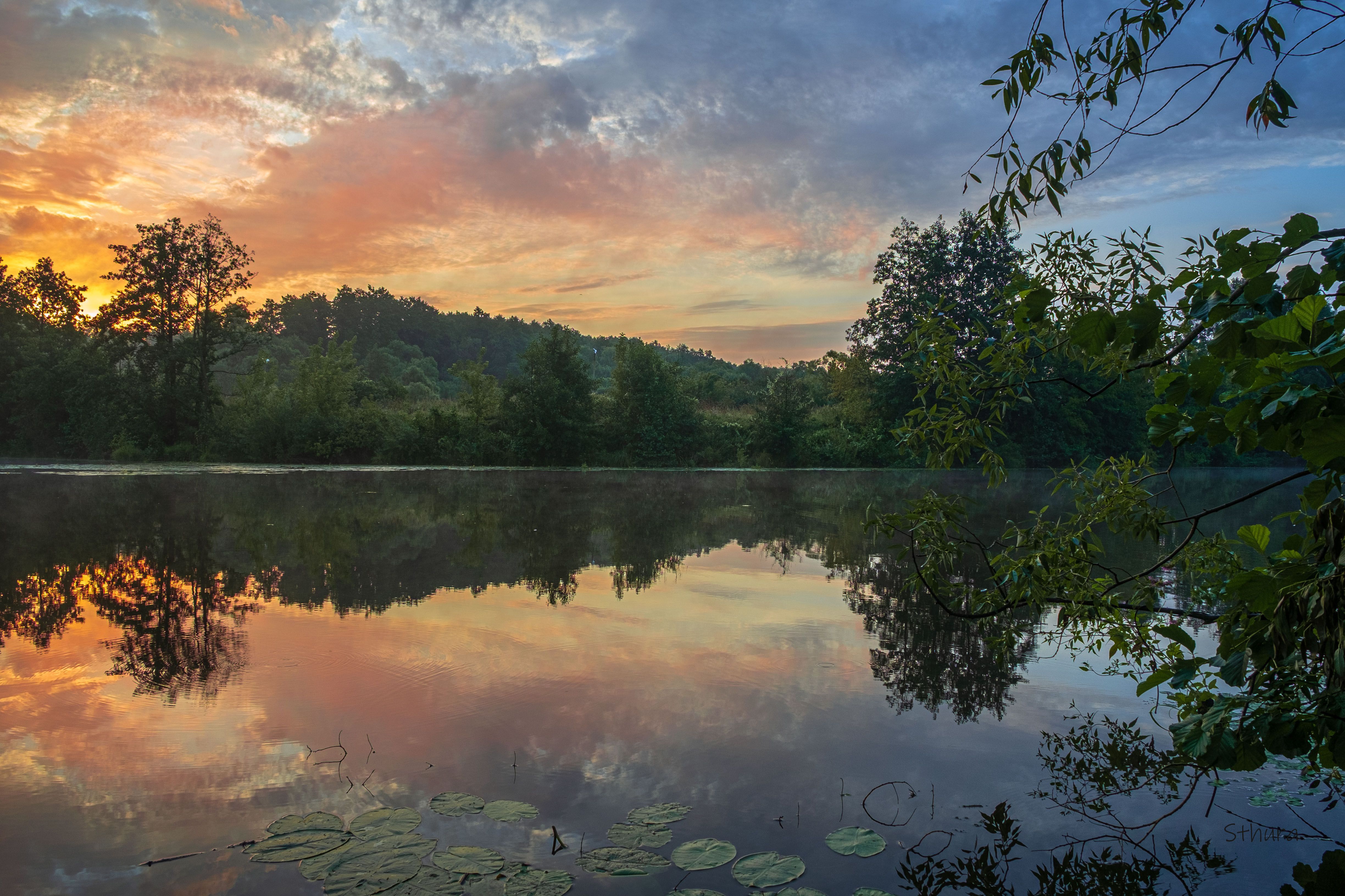 лето, озеро, утро, облака, отражение, природа, Александр Строков