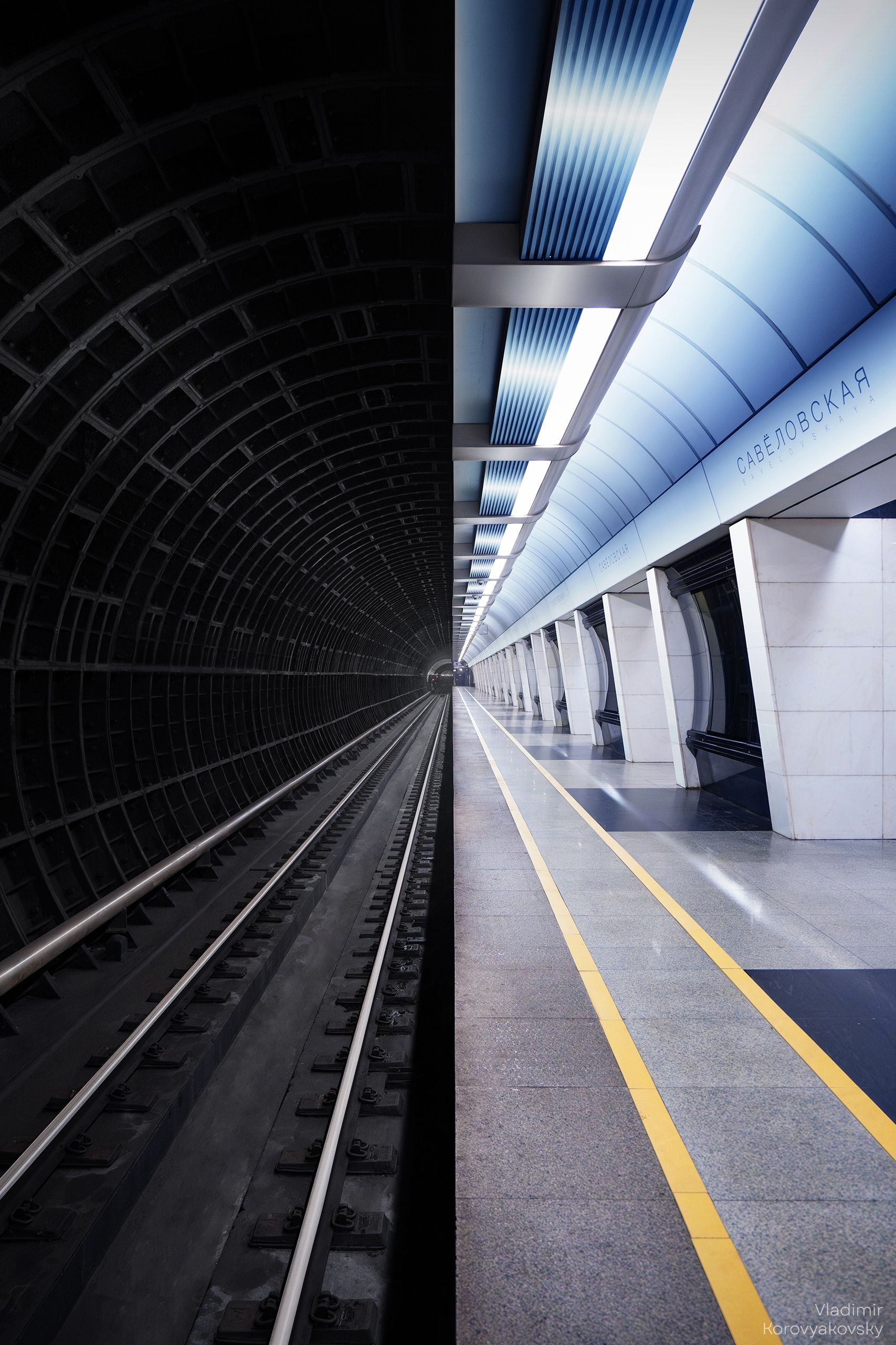 Метро Савёловская — чёткое разделение: тёмный тоннель и светлая платформа. Противоположности в одном кадре. 💡🚂