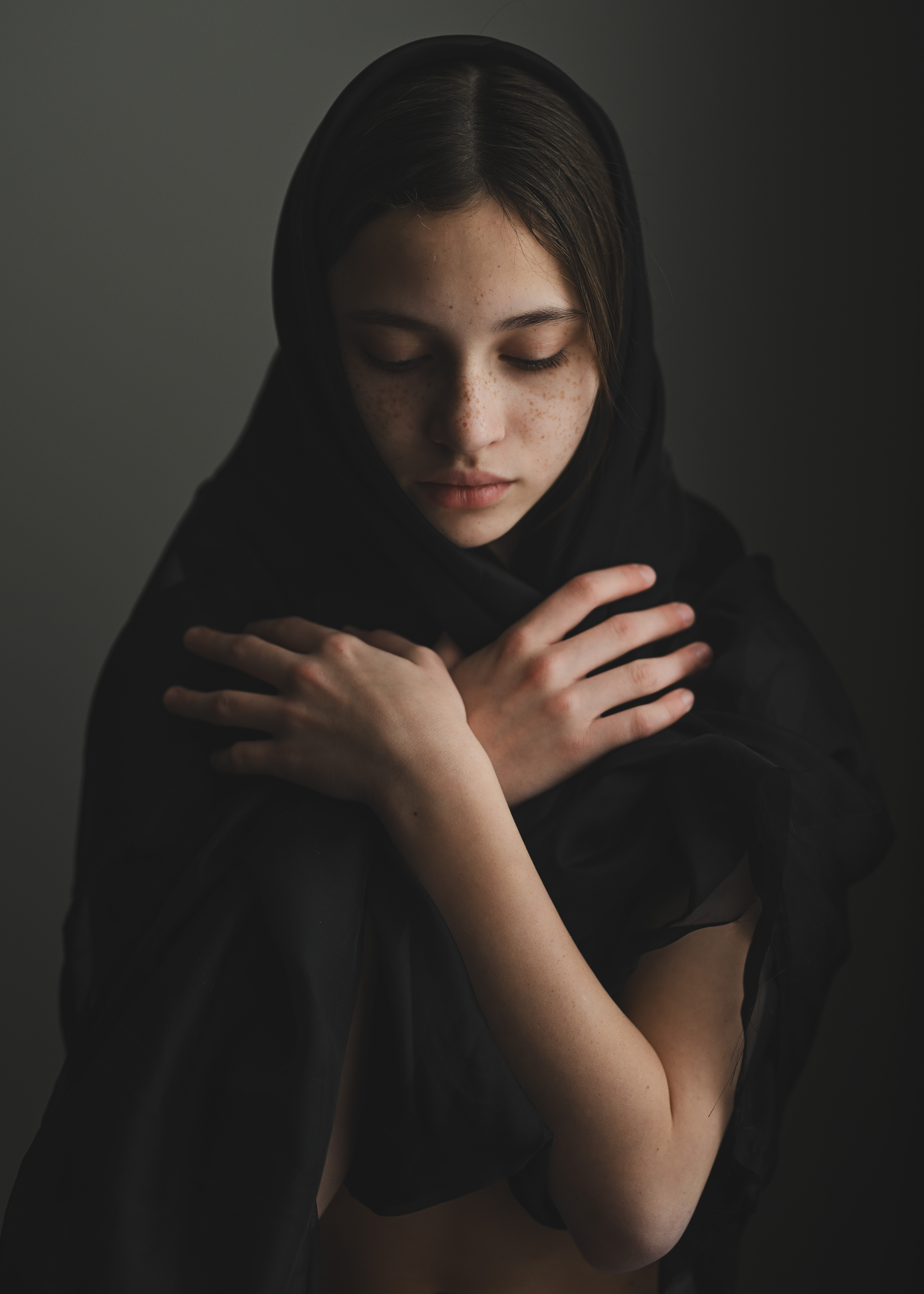 Сильные стороны: глубокая выразительность взгляда, тонкий свет, акцент на текстуре ткани и естественной коже, сдержанная эмоциональная наполненность.