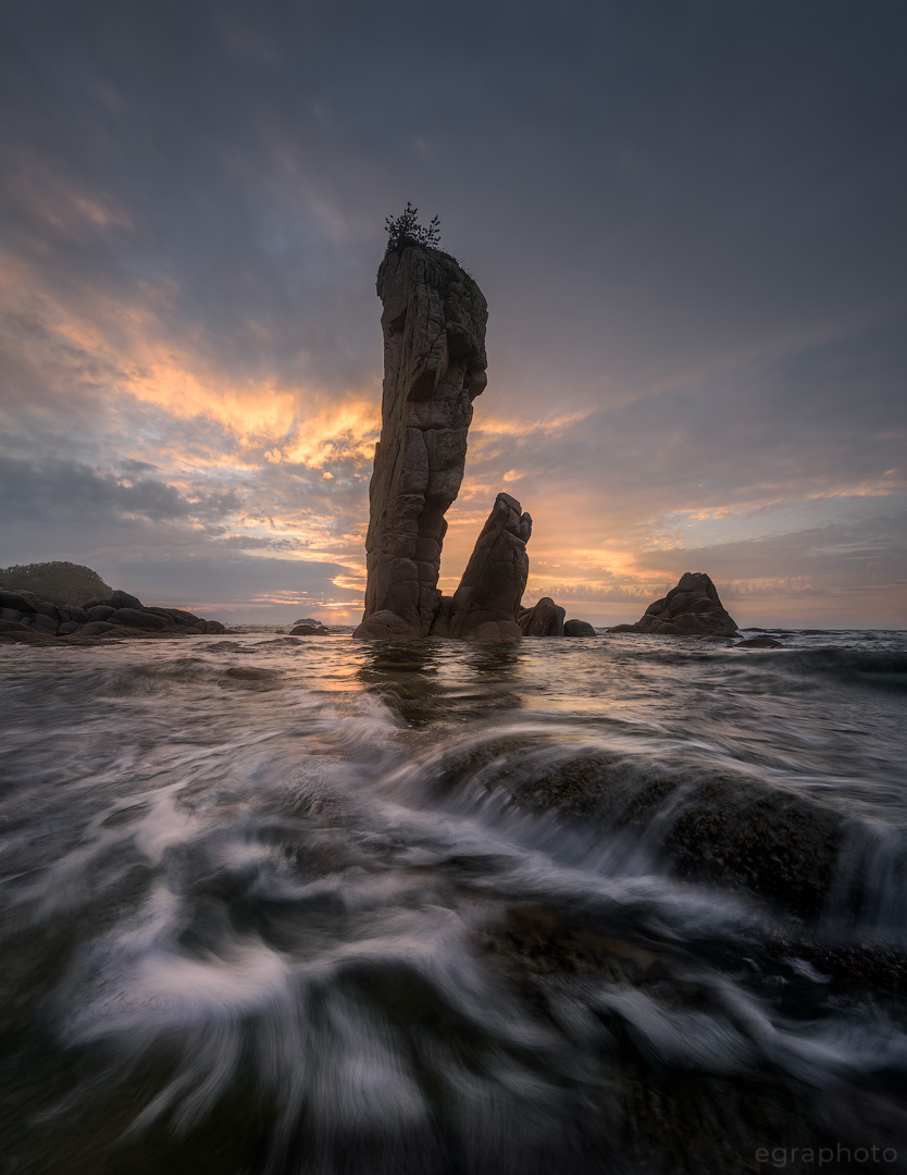 Вы хорошо поймали момент — камень в море, как страж, под небом, где день сменяется ночью. Вода в движении, а скала — неподвижна. Приморье в таком свете — сурово и красиво.