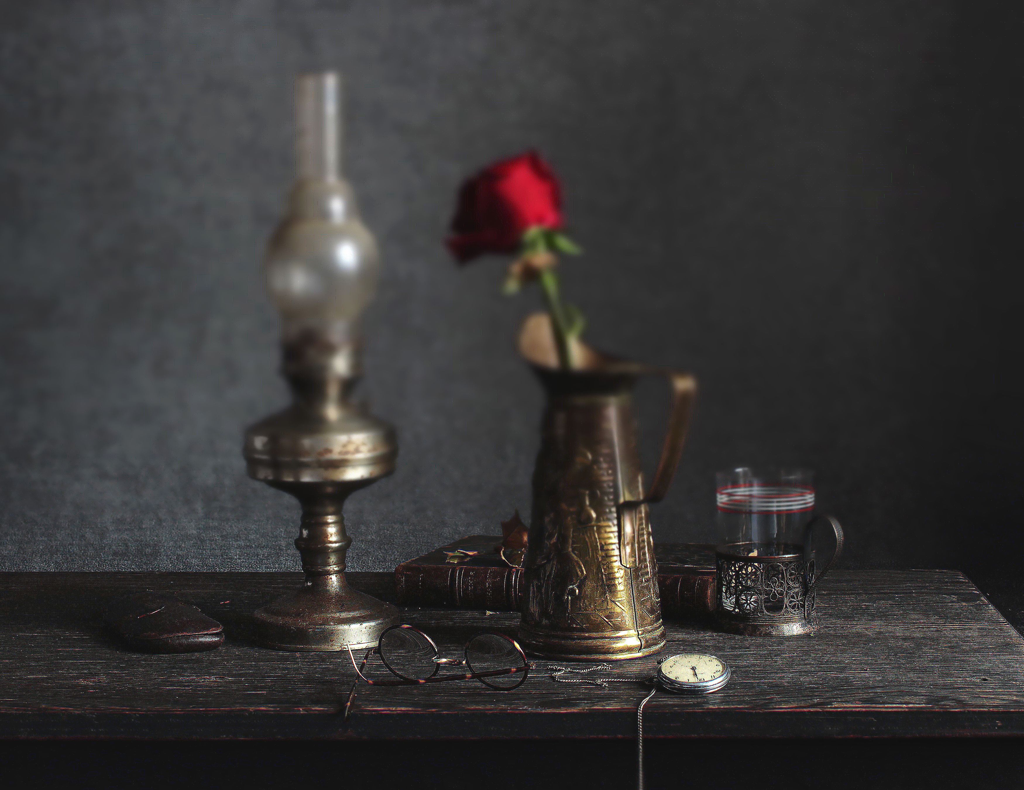 натюрморт, роза, лампа, очки, ретро_натюрморт, наталья_казанцева, Наталья Казанцева