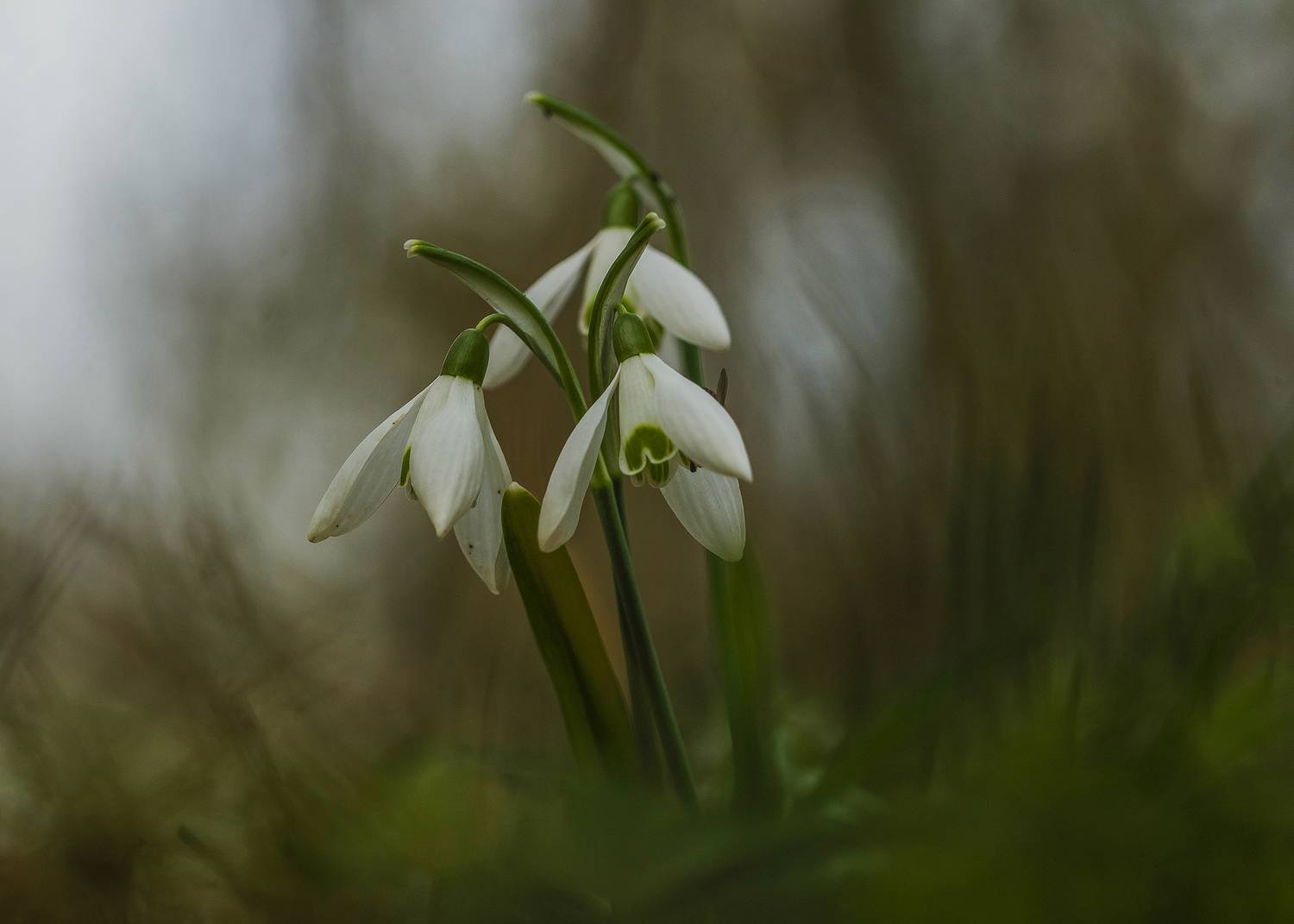 snowdropsflowersbotanywinterselective focusbokehcñlose up