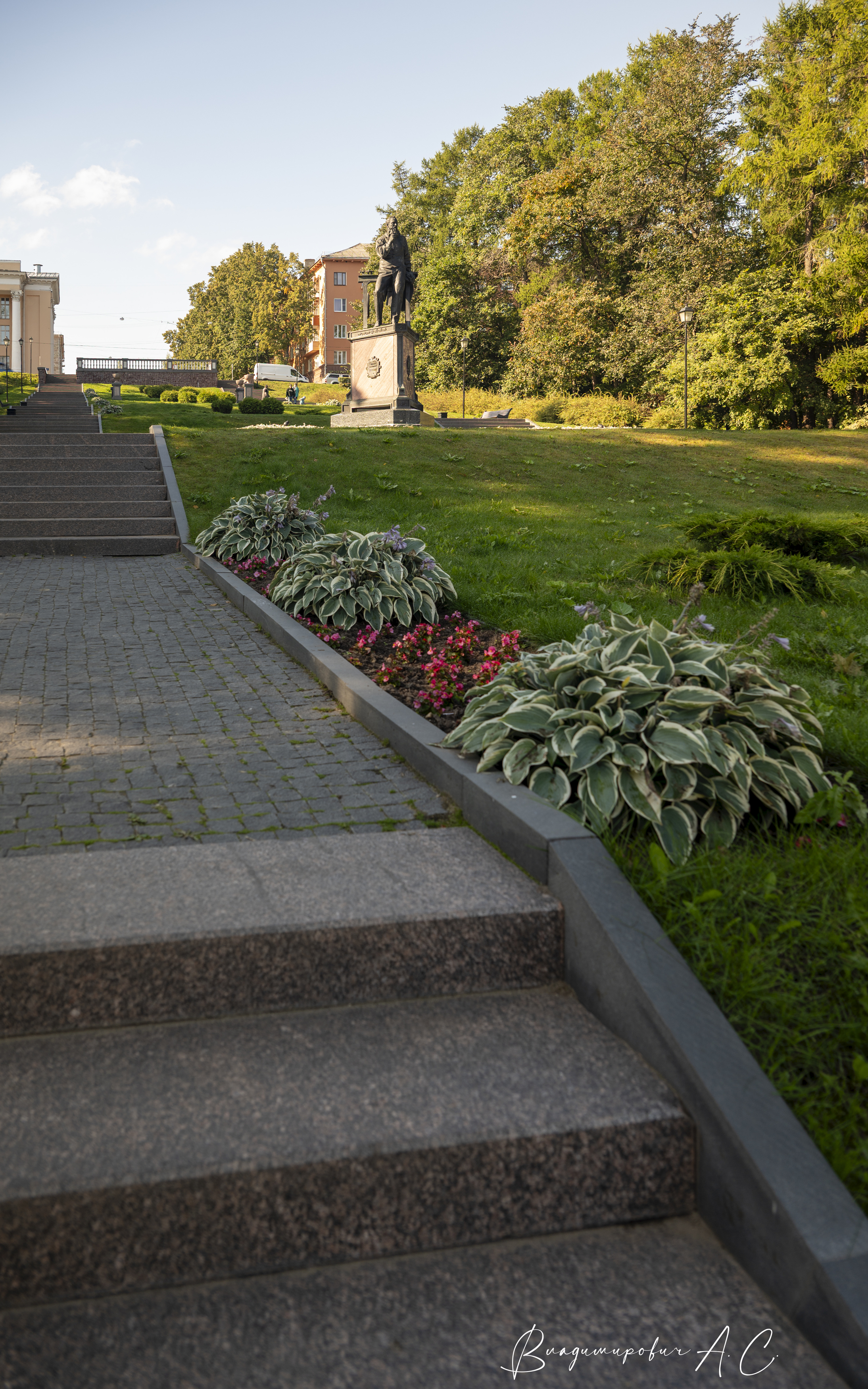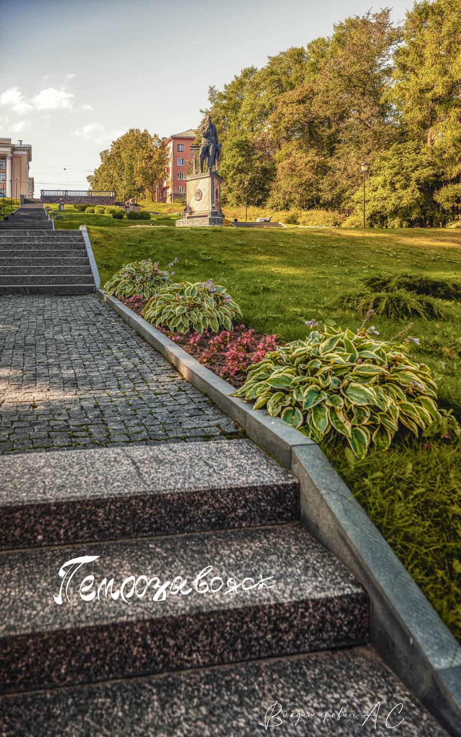 Памятник ювелиру Михаилу Перхину находится в парке Победы на спуске с улицы Германа Титова на набережную Онежского озера.