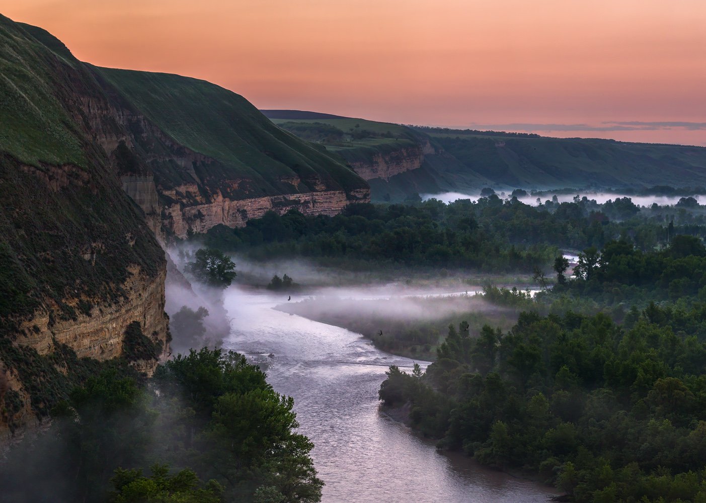 Берег, Весна, Рассвет, Река Кубань, Ставроольский край, Туман, Лашков Фёдор