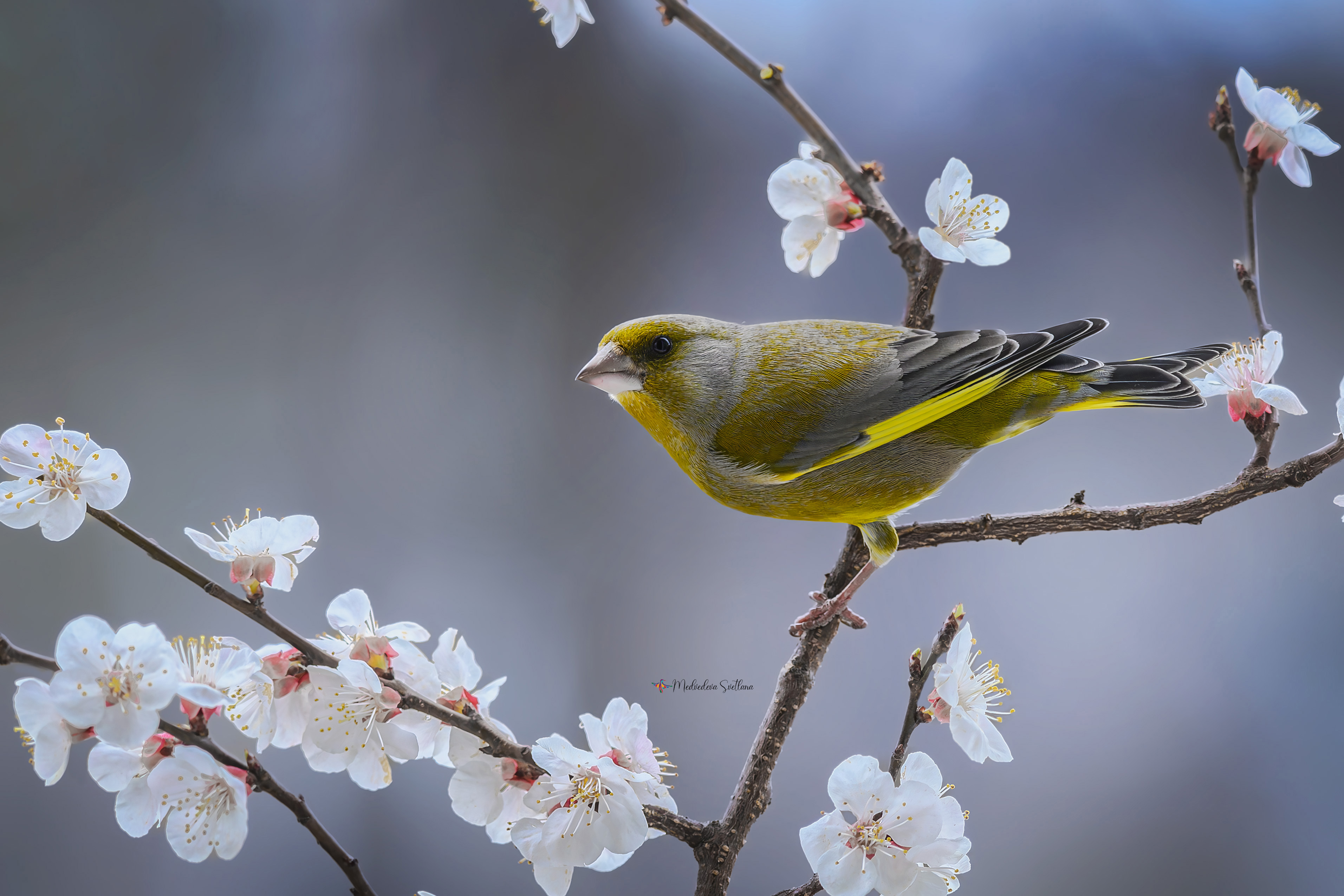 Зеленушки среди цветов — как ёлочные игрушки.