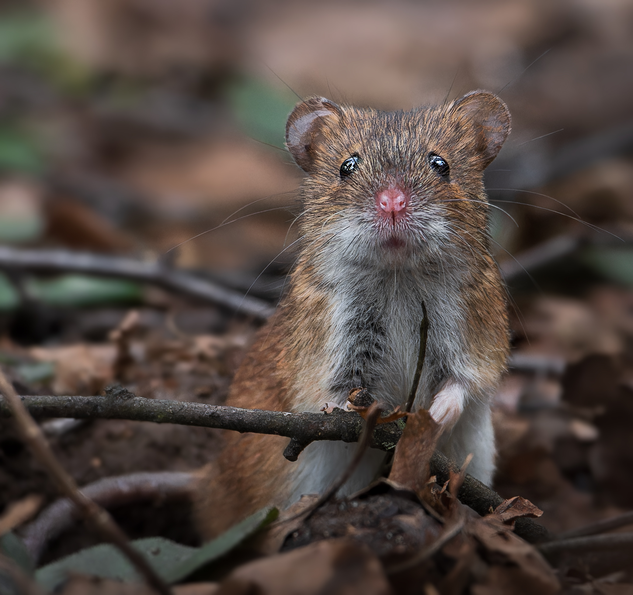 В тишине опавших листьев, среди сухих веточек и корней, появляется маленький герой — лесная мышь, застывшая в мгновении. Её взгляд, полный наивного любопытства, словно спрашивает: «Кто ты?». Фотограф Александр запечатлел не просто животное, а душу леса — нежную, бдительную, живую. Каждый волосок на шерсти, каждый отблеск в глазах — это дыхание природы, замершее в кадре. Это не просто снимок — это история о том, как велика красота в малом.