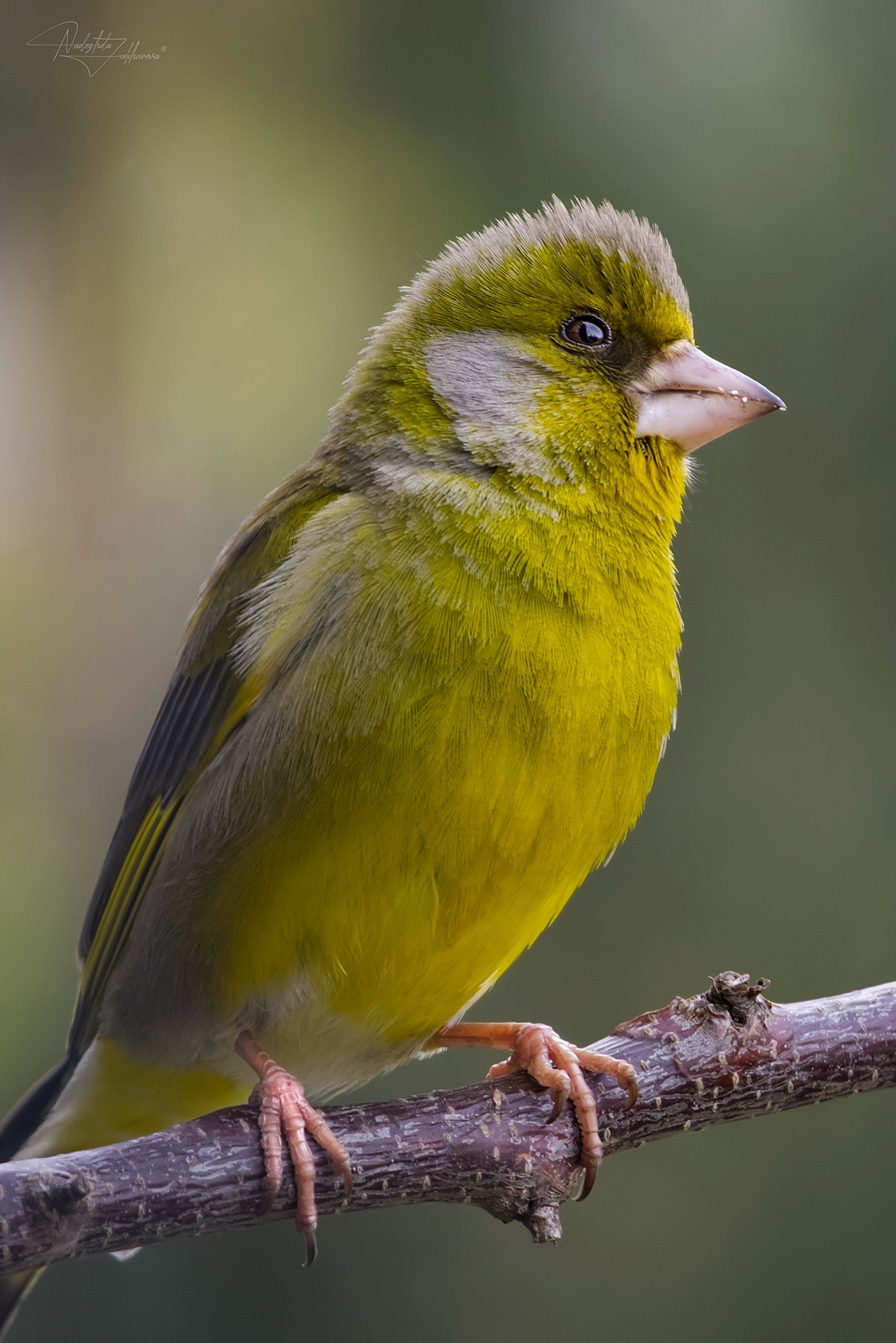 Обыкновенная зеленушка (самец) — певчая птица семейства вьюрковых (родственник щеглов и чижей), размером чуть больше воробья. Известна ярким желто-зеленым оперением, мощным клювом и громким пением, напоминающим канарейку. Их ещё называют Лесной канарейкой. Самец поет громко, чередуя звонкие трели с жужжащим звуком «вжжжжеееу». Зеленушки — оседлые или кочующие птицы, активные посетители кормушек, зернояд, очень любит семечки подсолнечника, но и не прочь полакомиться насекомыми.