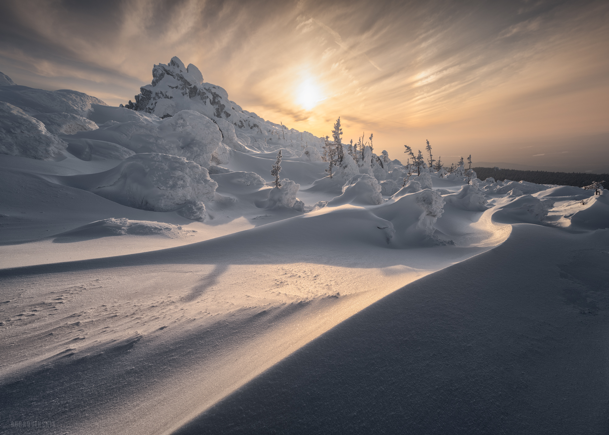 Михаил, снимок сильный — линии снега и света работают как композиционный скелет. Закат в Таганае, Южный Урал — вы умело зафиксировали игру теней и плавность снежных форм. Хорошо, что не перегрузили кадр, всё выдержано. 🌅