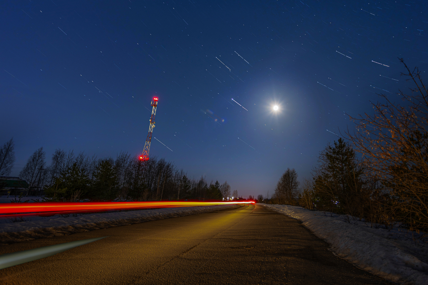 луна, весна, ночь, звезды, следы, трек, дорога, ярко, Панагушин Сергей