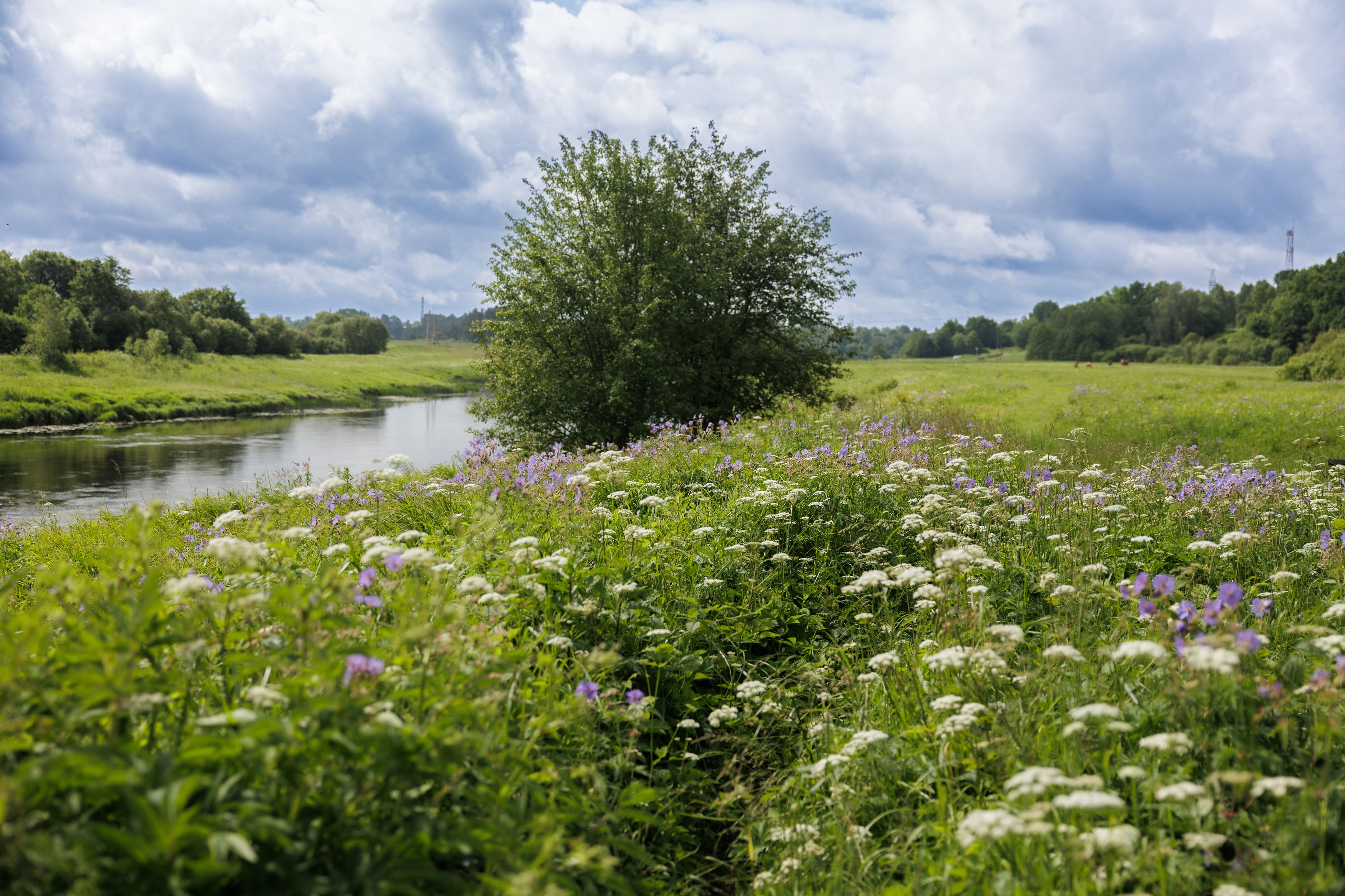 upe, pļava, ziedi, zaļš, Cielava Dace