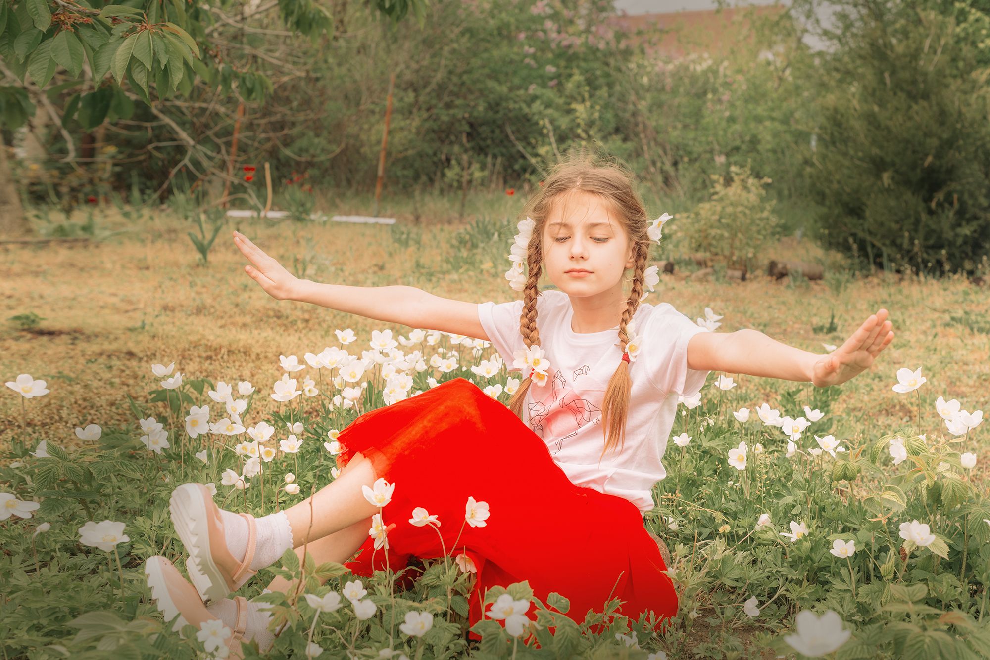 детский, портрет, весна, белые, цветы,  Мария