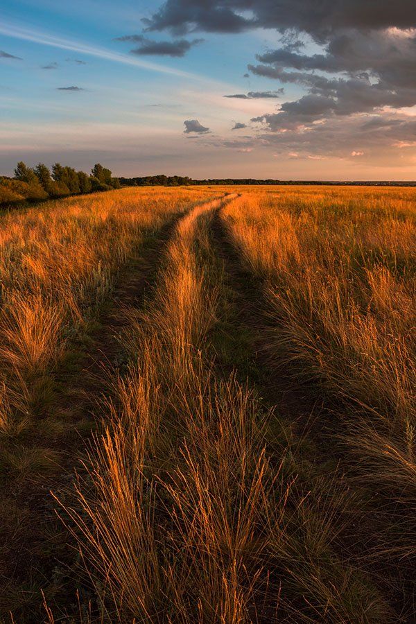 Пейзаж, природа, полевая дорога, вечерний свет, Александр Кожухов